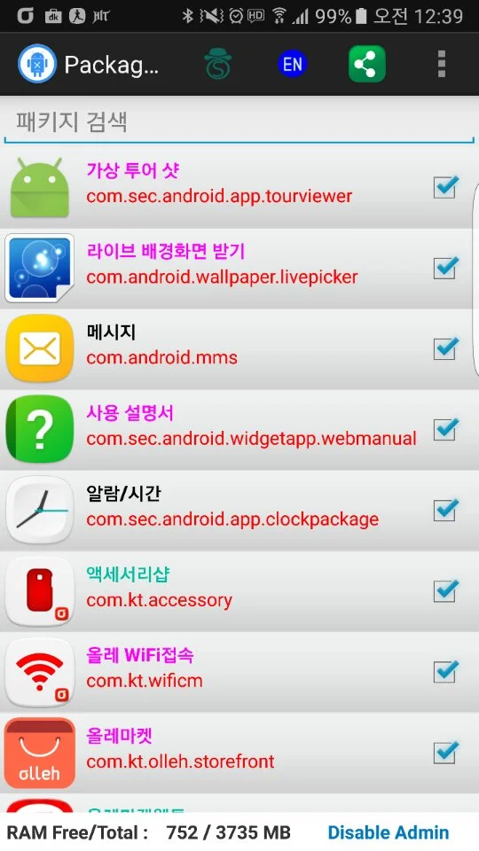 난 올레마켓, 올레 wifi, 삼성 브라우저, 이메일, 플래너, dmb, briefing 등을 꺼버렸다. 적고 보니 되게 많네