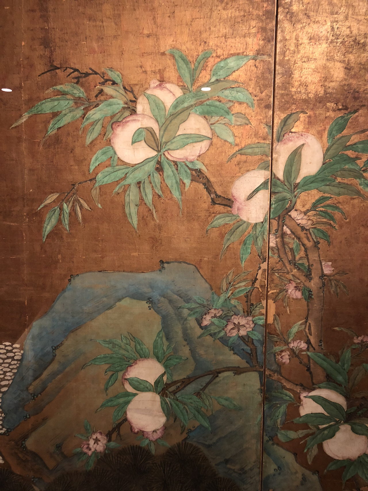 오늘 국립 고궁박물관에 방문해서 눈 앞에서 본 해학반도도는 실존하는 병풍들 중 가장 큰 병풍이라 특별했고 금박 칠 된 배경이 이목을 집중시킨다. 또 십장생 중 바다와 학, 복숭아를 중점으로 아름답게 그려진 점 덕분에 정말 계속 한국에 남아있어 줬으면 하는 바람이 생긴다. 십장생 전부 그려진 것은 본 적이 있지만 이렇게 바다, 학, 복숭아에 초점을 맞춘 스타일의 보물을 국내에서 본 적이 없어서 더 특별하다.