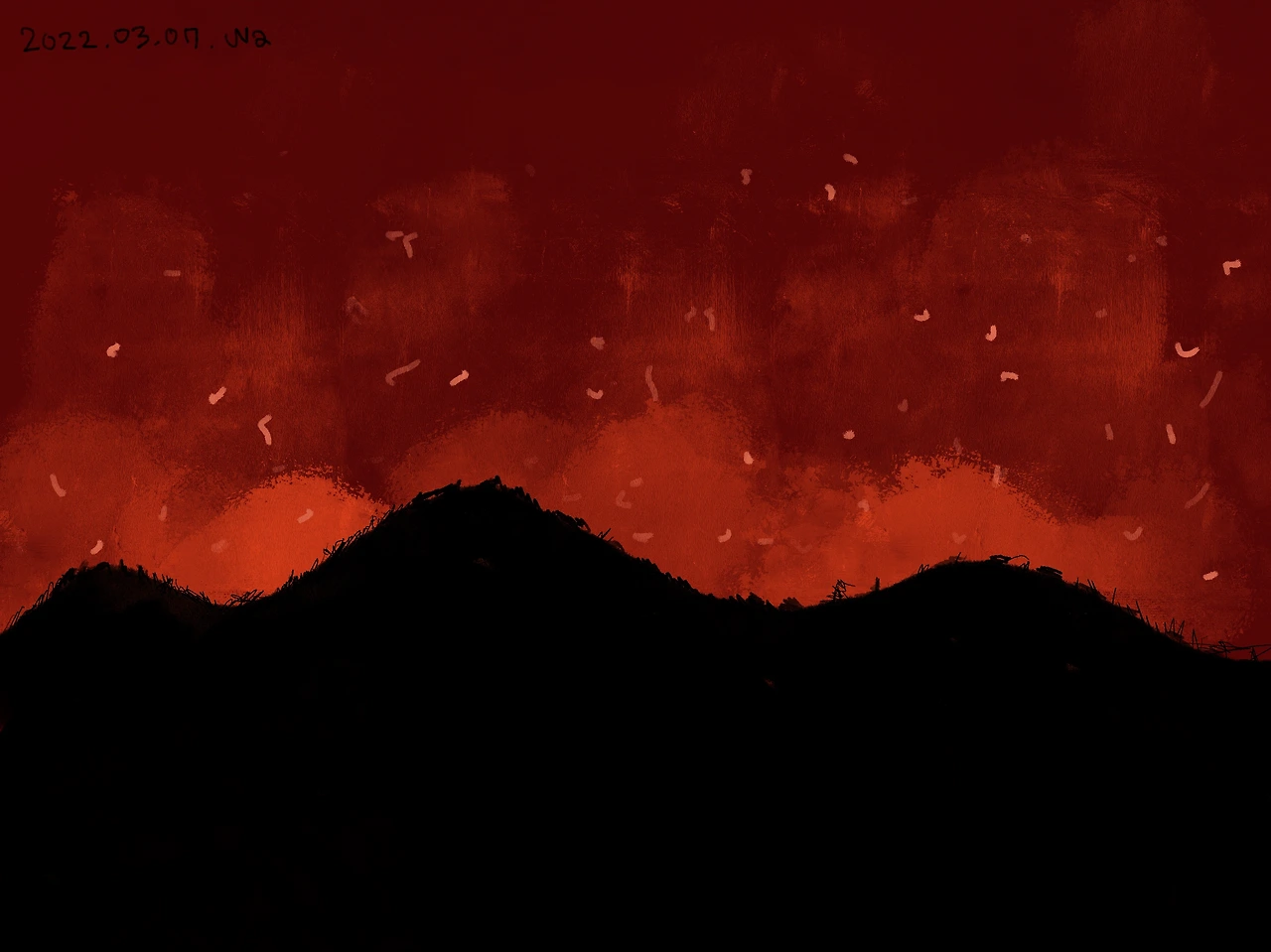 산속을 걸으면 소음 대신 명쾌한 새소리가 들려왔다. 숨이 벅차지만 정상을 향해 걸을수록 커다랬던 도시는 조그마해졌다. 나무의 깊은 주름과 가지는 자연이 들려주는 이야기였다. 불씨 하나에 모든 건 재로 돌아가버렸다. 도망갈 다리가 없던 나무들은 그대로 죽음을 맞이했다. 누군가에겐 평생이었을 마을은 존재했다는 흔적도 지워졌다. 사람들 간 관계가 무너지고 기후재난이 끊이질 않는 시대라 이런 슬픈 일들이 얼마나 갈지 모르겠다. 하루라도 빨리 마침표가 찍히면 좋겠다.