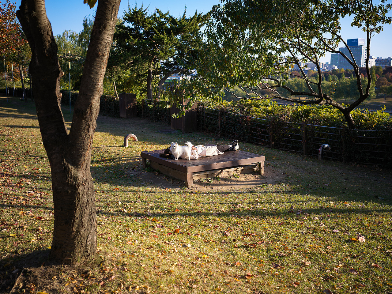 까무룩 잠이 든 주인을 지키는 강아지의 가을은 또 얼마나 푸근할지.