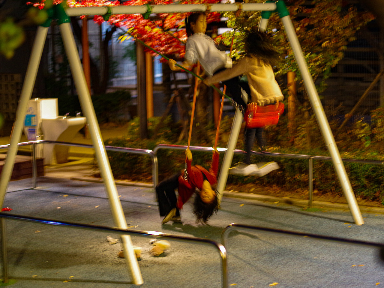 한번 더 급하게 발을 구르는 아이들의 그네놀이에