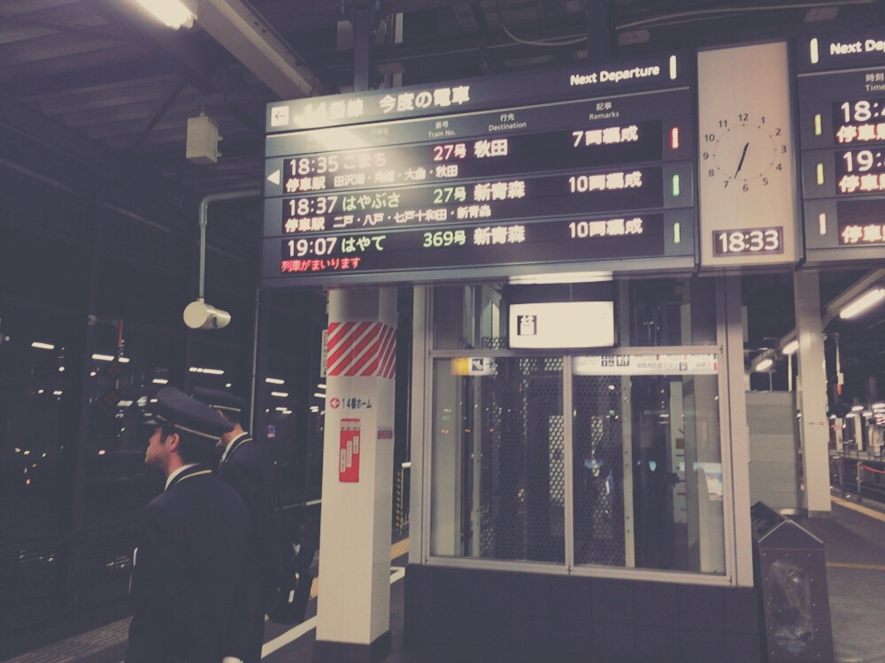 도쿄(7:50)----토호쿠 본선---->(9:27)우쓰노미야(9:32)----토호쿠 본선---->(10:23)쿠로이소(10:27)----토호쿠 본선---->(11:30)코오리야마(11:56)----토호쿠 본선---->(12:43)후쿠시마(13:00)----토호쿠 본선---->(14:14)센다이(14:34)----토호쿠 본선---->(15:20)코고타(15:35)----토호쿠 본선---->(16:23)이치노세키(16:31)----토호쿠 본선---->(18:05)모리오카(18:37)----토호쿠 신칸센---->(19:09)하치노헤(19:45)----하치노헤 선---->(19:54)혼하치노헤(20:45)----남부 버스---->(20:59)하치노헤 항(22:00)----실버 페리---->(6:00)토마코마이