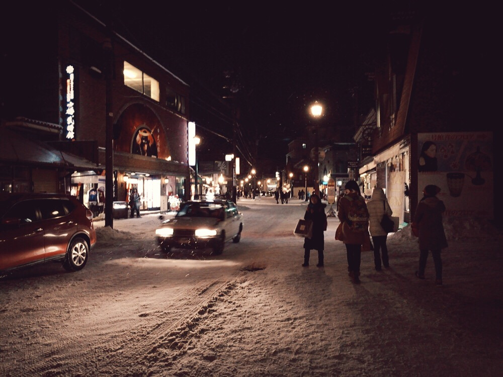 오르골 당에서 충분히 몸을 녹이고 다시 오타루 시내를 돌아보기 위해 밖으로 나왔다. 해는 이미 저물어 있었다. 해가 진 거리는 또 다른 모습이었다. 로맨틱한 색으로 덧칠된 느낌이랄까. 거리 전체가 그러한 톤으로 변해 있었다. 그에 못지않게 추위 또한 더욱 짙어져 있었다. 간간히 내리는 눈 사이로 차가움 만이 가득 들어찬 느낌이었다. 메르헨 교차로를 시작으로 사카이마치를 지나 오타루 데누키코지까지 걸었다. 데누키코지는 술 한 잔 걸치기에 걸맞은 분위기 좋은 식당과 술집으로 이루어진 골목이었다. 하지만 그곳에 있는 모든 가게가 문이 닫혀있다는 것이 문제였다. 이곳에서 저녁을 먹을 생각이었는데, 문이 열려 있는 곳은 정말로 단 한 곳도 없었다. 낯 선 도시에 와서 문이 닫히 술집 골목을 홀로 걷는다. 춥고 허기가 지긴 했지만 그리 나쁘지는 않았다. 아무도 없는 골목을 걸으며 따뜻하게 몸을 녹여줄 식당을 생각했다.