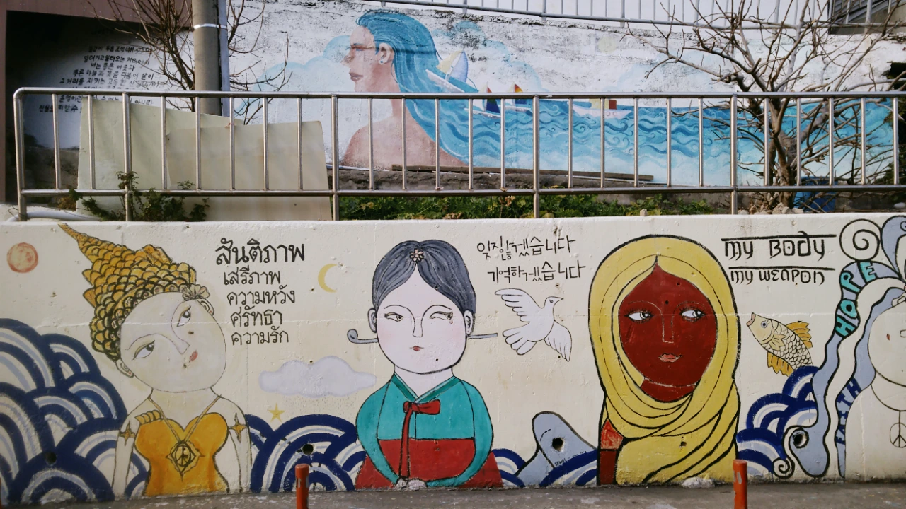 -벽이 있는 공간은 모두 도화지가 되는 마을. 여러 사람들이 모여 저마다의 그림을 그리고, 색을 칠한 마을. 영하 7도 라는 서울날씨에 비하면 통영은 따듯한 편이었다. 보자마자 미소가 지어지는 벽들도 있고, 잠시 생각하게 되는 벽도 있었다. 화가들이 말하고 싶었던 건 뭐였을까. 어떤 마음으로 이 벽에 칠을 했을까 생각하며 산책하는 마음으로 둘러보았다. 사람들이 줄을 서서 사진을 남기던 날개 벽화 앞에선 사진 찍어줄 사람이 없어서 조금 아쉽기도 했지만.