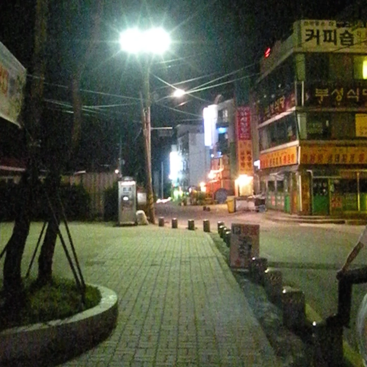 쥐뿔도 없는 길가엔 가로등 불 이외엔 아무것도 없었다.
