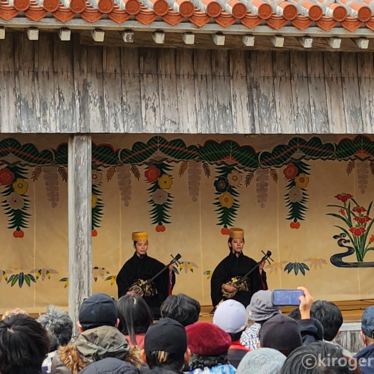 그러나 그건 확실한 착각이었고~ 이내 티켓 오피스가 설치된 넓은 마당이 나왔다. 무대에선 오키나와 전통 공연이 진행 중이었다. 처음 보는 오키나와의 전통 의상과 악기가 고즈넉한 새해 첫날 분위기를 자아냈다.
