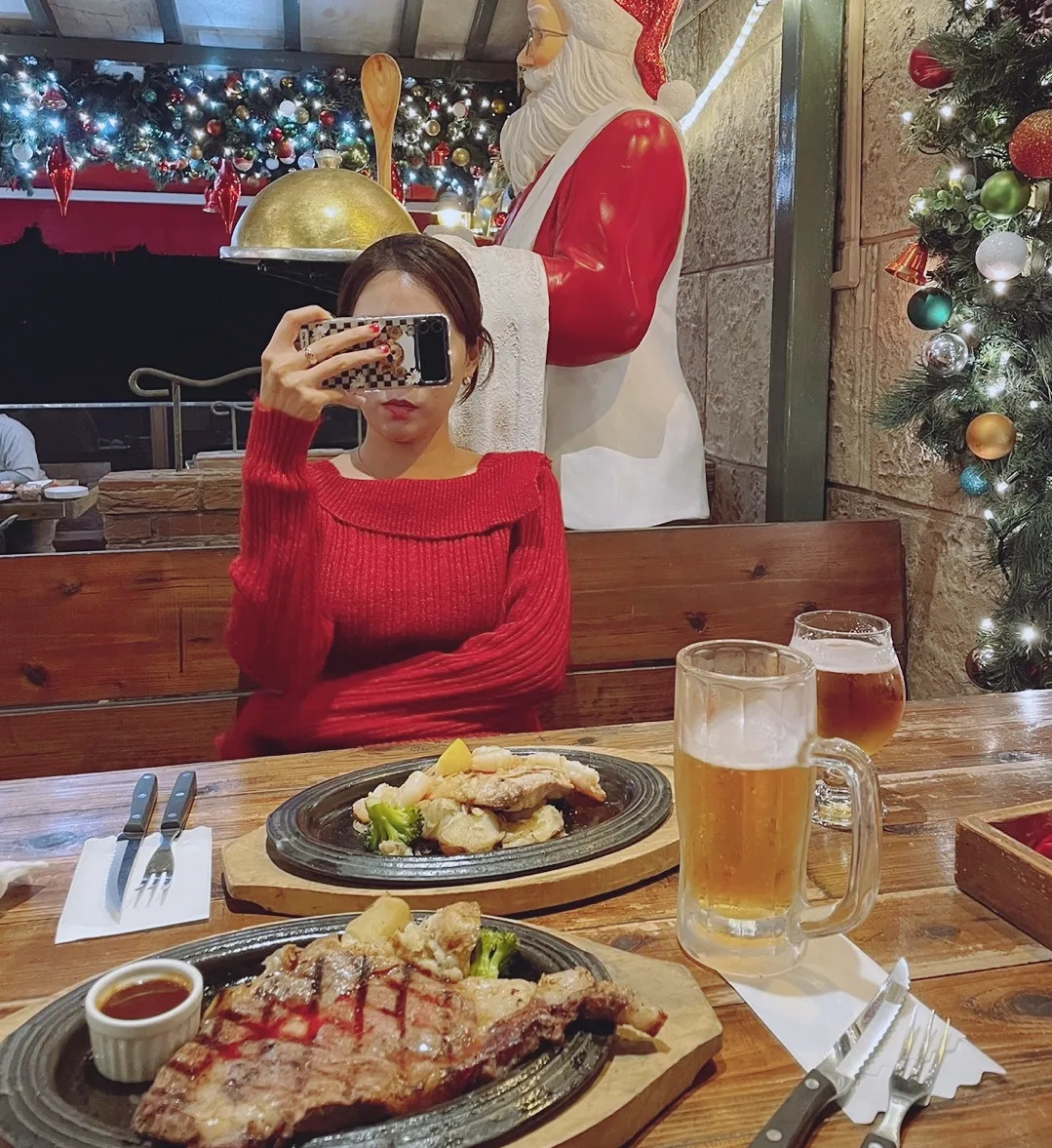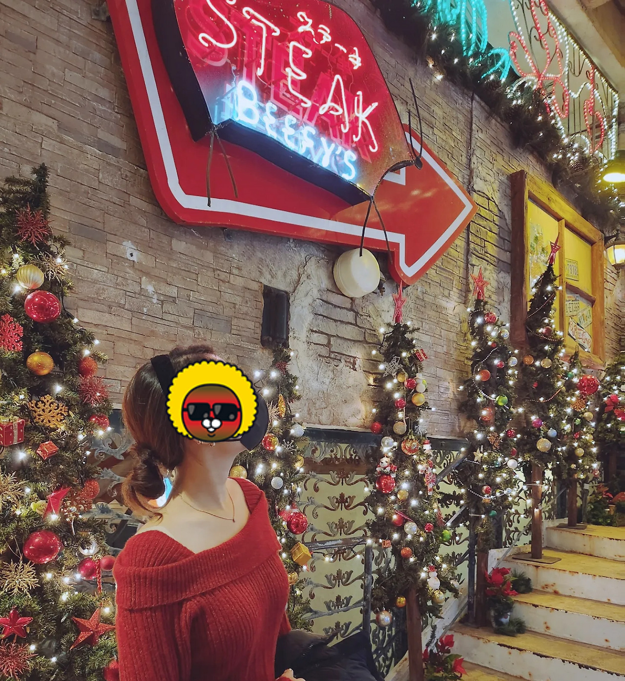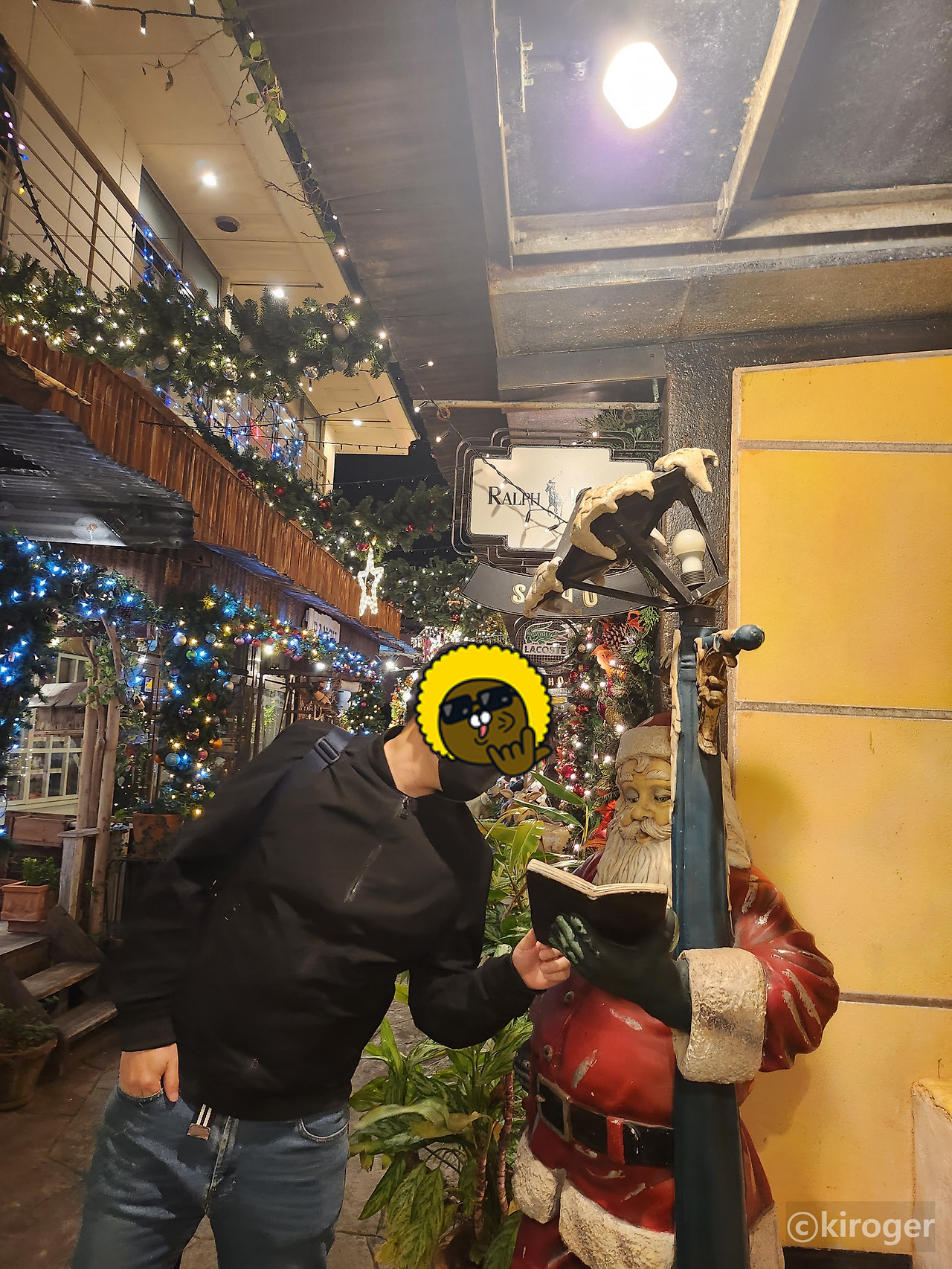 하지만 이 판국에 맛이 중요할쏘냐. 비싼 가격에는 장식값까지 포함된 것이라고 생각하면 모두 용서됐다. 내 뒤에는 무려 앞치마를 두른 산타 할아버지가 있었다고!