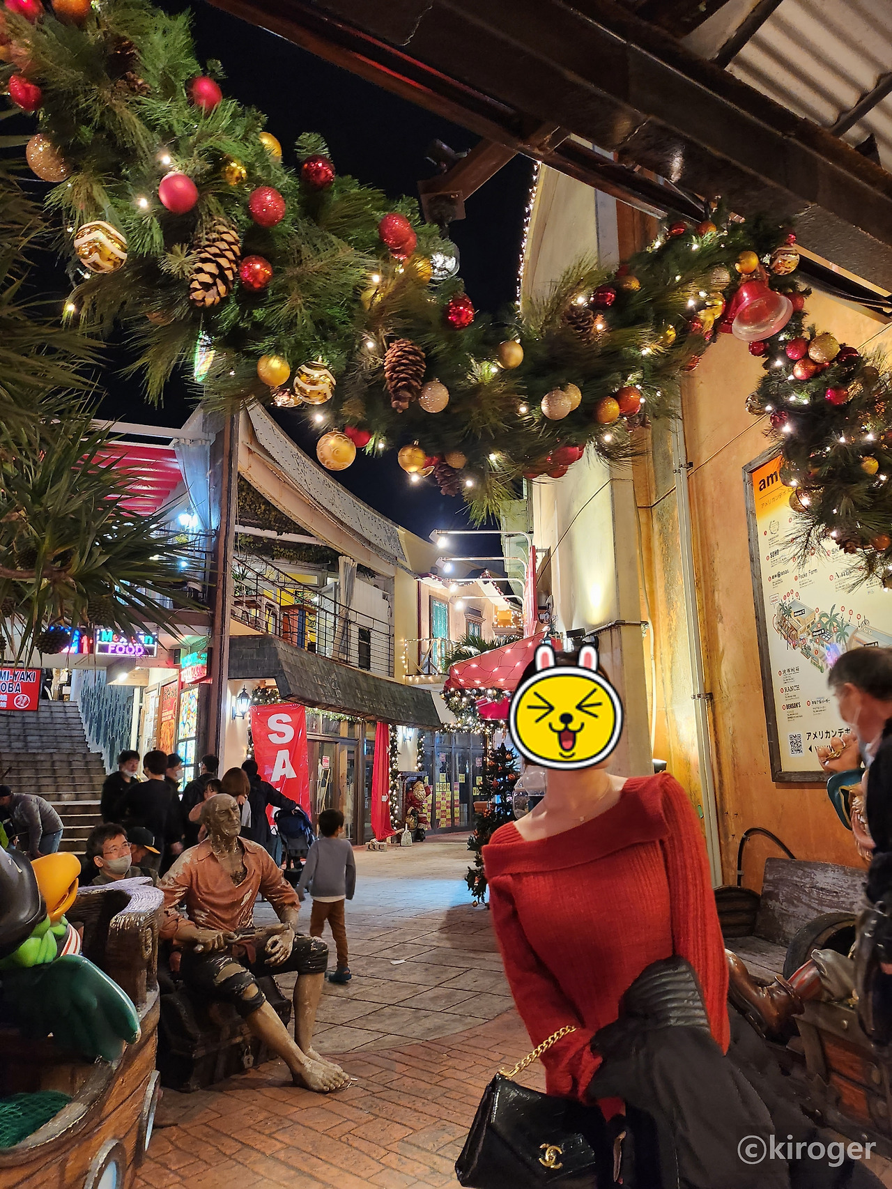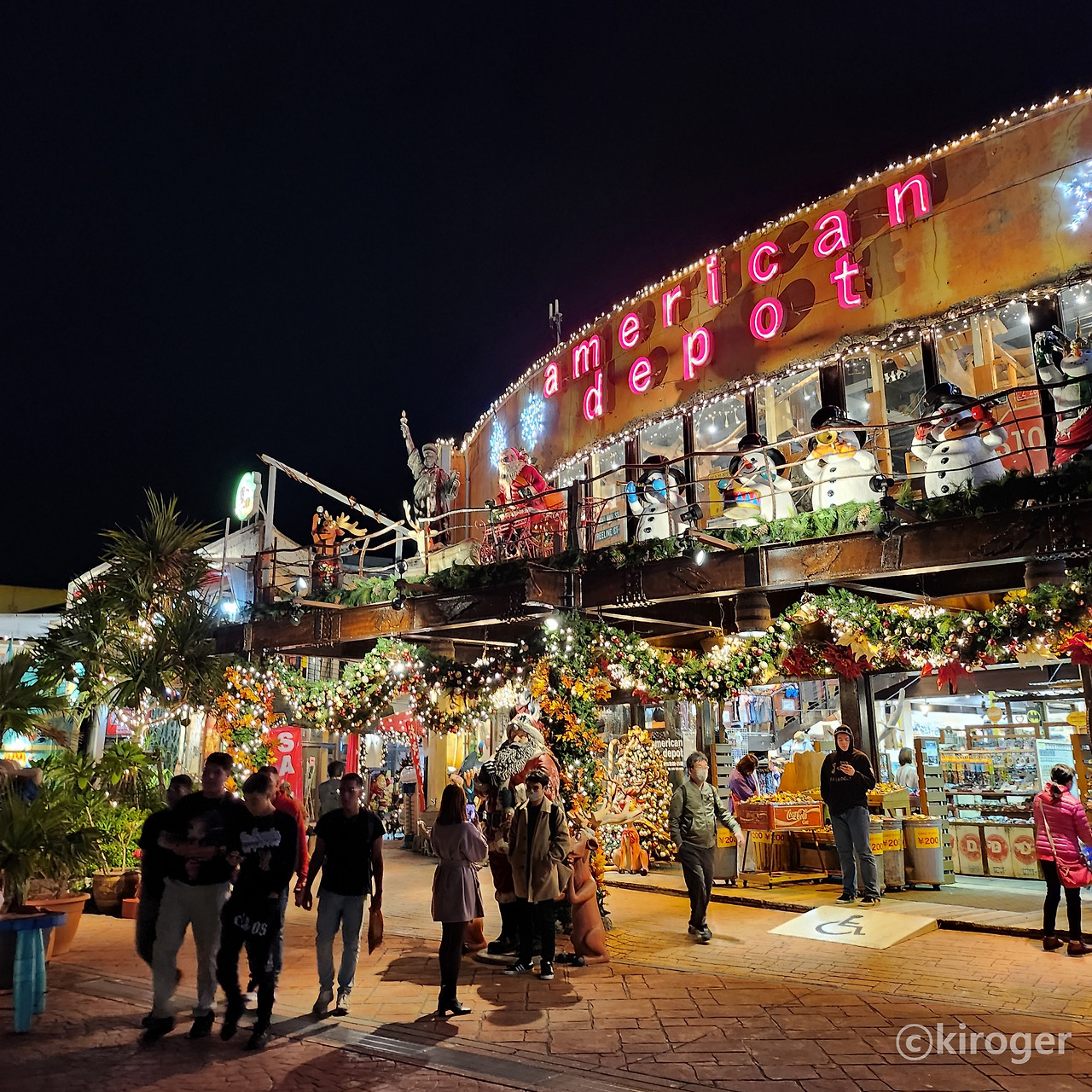 그러나 하얀 백지상태에서 만난 아메리칸 빌리지는 환상적이었다. 반짝이는 조명과 크리스마스 나무, 사람만 한 눈사람, 다채로운 표정의 산타들 사이를 걷고 있노라면… 마치 연말이면 꼭 나오는 겨울 냄새나는 할리우드 영화 속의 주인공이 된 것 같았다 ♥