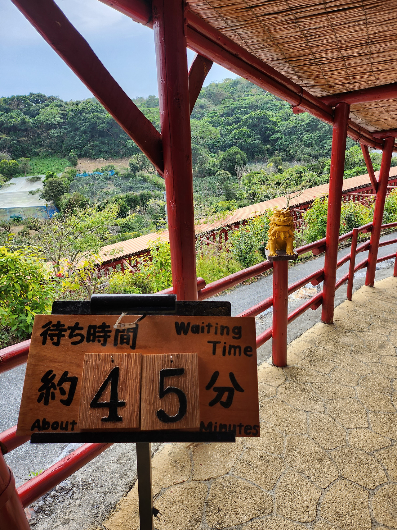 입구에는 오키나와 전통 복장을 입은 나이가 지긋하신 분이 서계셨다. 예상 대기시간이 45분인데 괜찮겠냐고 근엄하게 물으셨다.