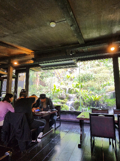 1층은 창문이 없어 폭포수를 직접 마주할 수 있는 반면, 2층은 거대한 통장으로 구성되어 비교적 어둡고 정돈된 느낌이었다.