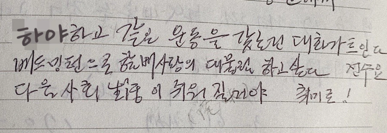 타지에 있는 손녀를 생각하며 침침한 눈으로 한 자 한 자 써 내려갔을 그 손길을 생각하니 마음이 찢어질 거 같이 아팠다. 후회가 밀려왔다. 할아버지는 마지막 순간까지도 응원하고 계셨다. 그분의 존재가 나에게는 든든한 버팀목이었다는 것을 뒤늦게 깨달았다. 이 문자는 단순히 글자가 아니라, 내가 앞으로 어떤 어려움을 겪든 힘내라고 속삭이는 할아버지의 목소리처럼 느껴졌다. 유형의 소유물과는 달리, 일기장 속의 문장과 문자 메시지는 시간을 초월하여 내게 닿는 진정한 무형의 흔적이었다.