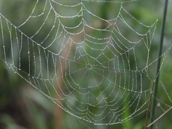 산책로 옆에 이슬을 머금은 거미줄이 말한다.