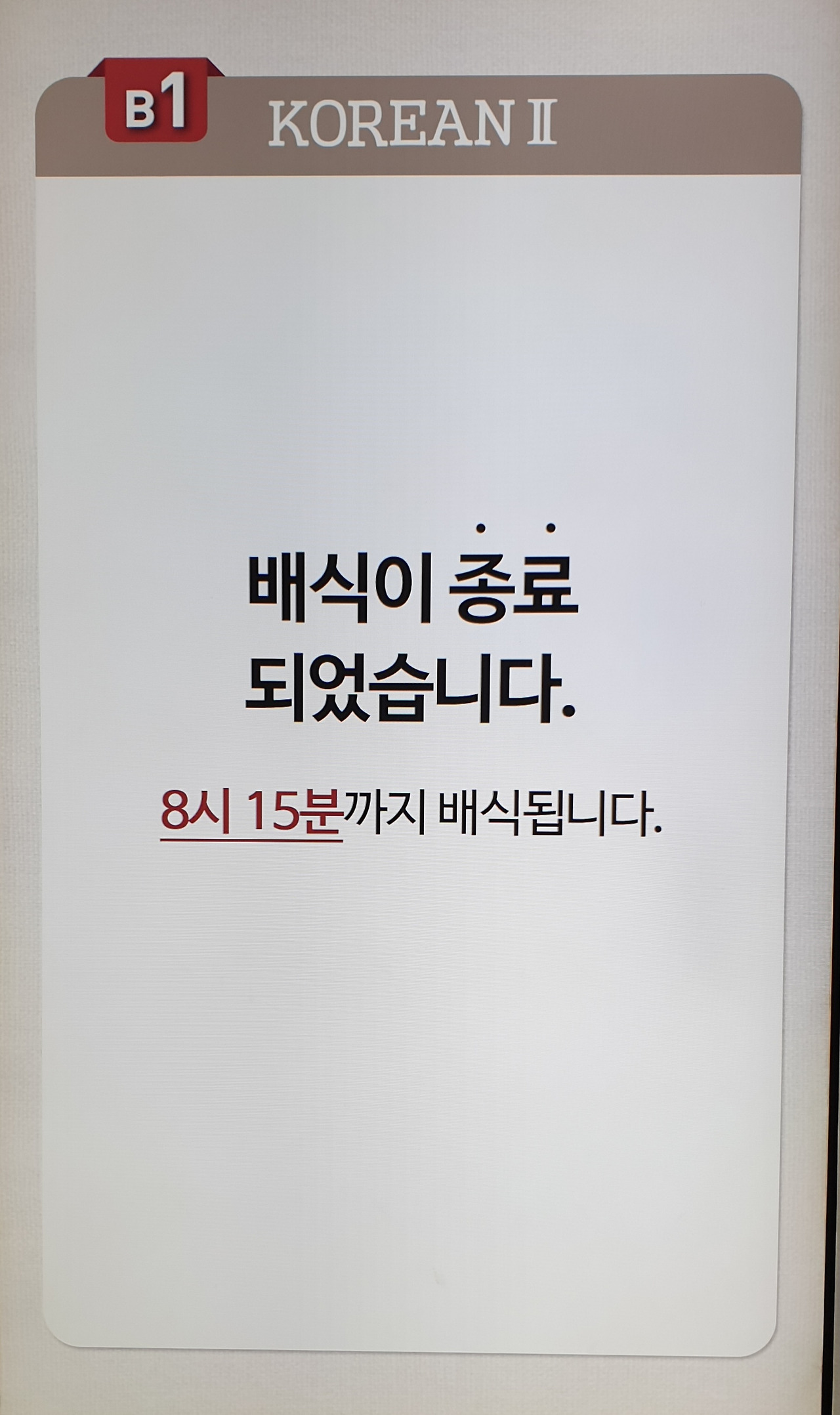 정보를 주는 입장에서는 배식이 끝났다는 말로 끝일 수 있지만, 정보 이용자를 배려한다면 아래의 글이 훨씬 가치 있습니다.