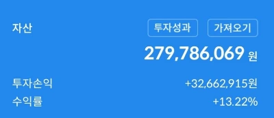 올해 초 2.92억으로 시작한 계좌가 현재 2.79억 수준이 되었네요.