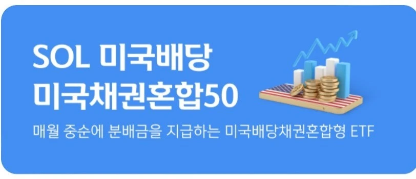 그러던 중 지난 9월 SOL 미국배당미국채혼합 50이라는 종목이 출시되었다. 상품명에서 알 수 있듯이 미국배당과 미국채를 50:50으로 섞어 만든 상품이다.