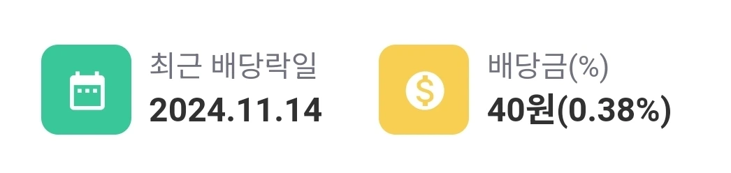 해당 종목은 매달 중순 배당락일이 발생하는데, 출시일이 9월 중순이라 아마도 1달 반 정도의 배당금에 해당되어서 40원이 나온 게 아닌가 생각해 본다.