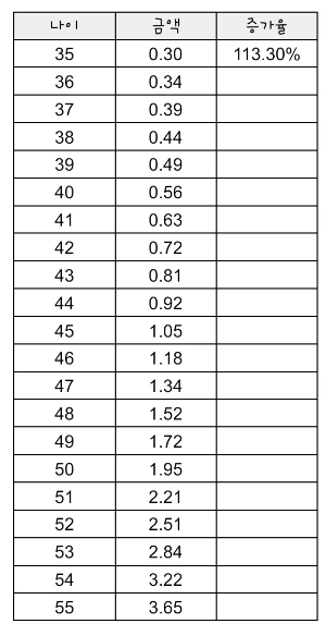 13.3%의 증가가 있으면 55세 12월에 3.65억이 만들어집니다.