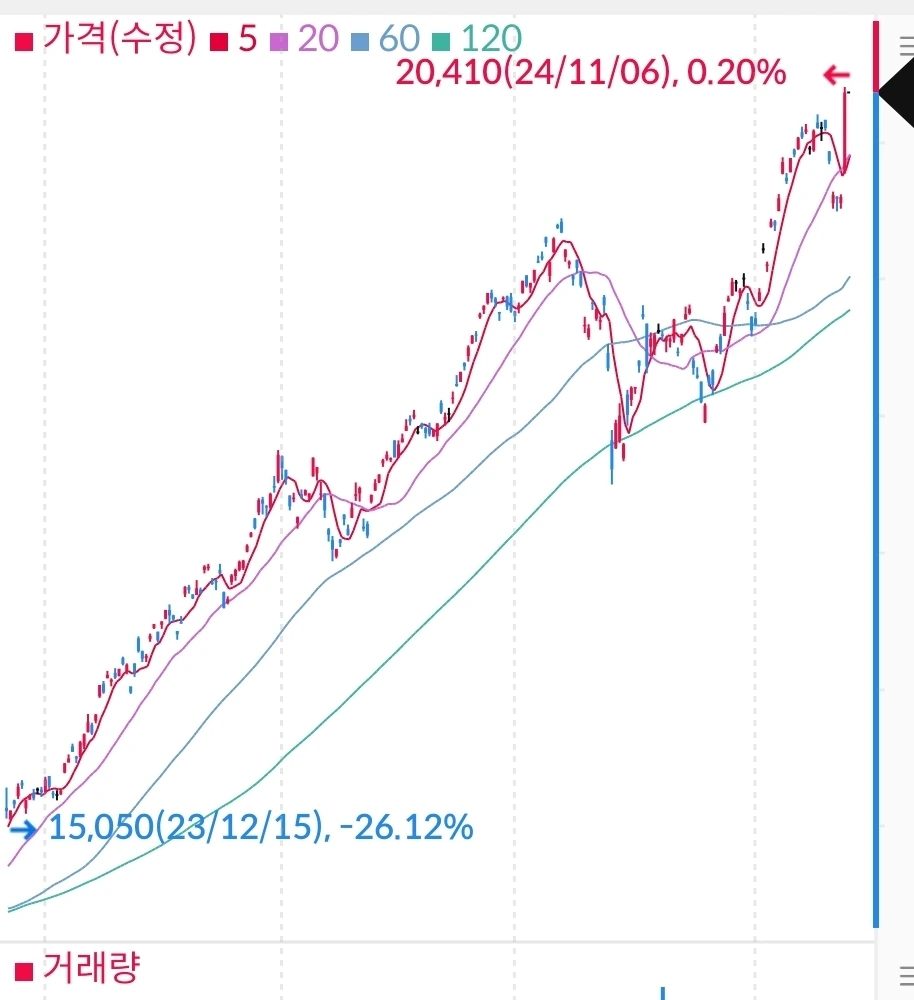 15,366원이었던 주가는 어제자로 20,410원을 터치했다. 32.8%가 상승한 가격이다.