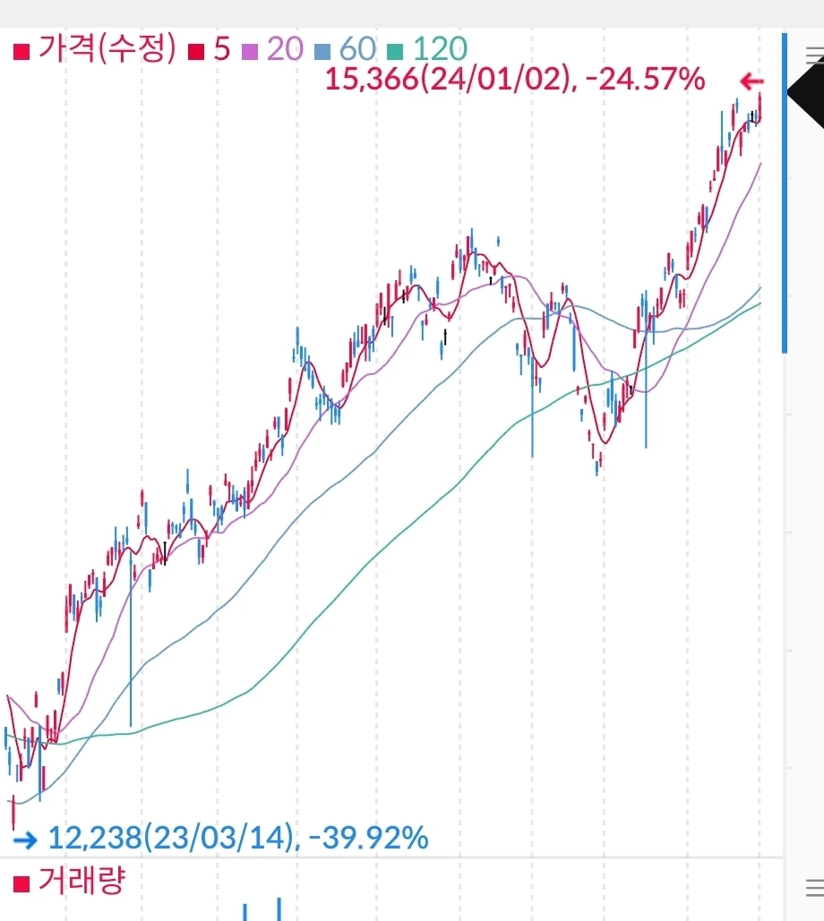 하지만 그들의 발목을 잡는 건 '23.12월 말 주가가 너무 고점이라는 것이었다. 지금 돌이켜보면 그 당시 주가는 가파르게 오른 상태였다.