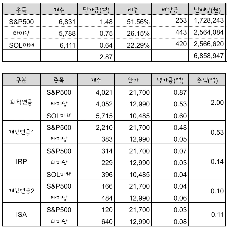 - SOL 미국배당미국채 혼합 18주 추가 매수