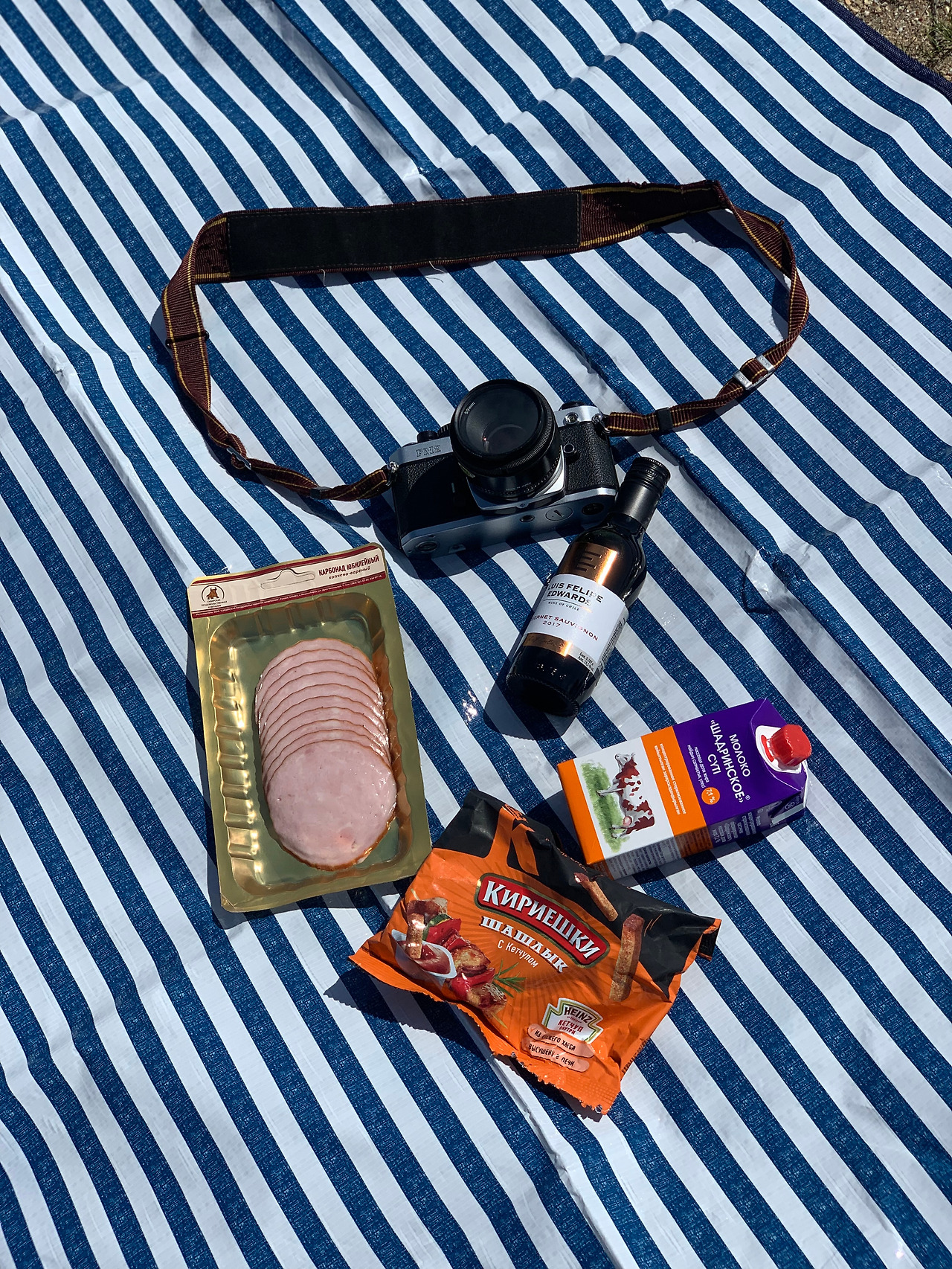 슈퍼에 도착하여 피크닉 용 살라미 소세지, 작은 와인 한 병 (러시아는 정말 충격적일 정도로 술 가격이 싸다!), 한국에서 가져온 콘플레이크를 말아마실 우유를 구매한 후 숙소로 다시 돌아가 피크닉 용 매트를 든 후 숙소 뒤 바이칼 호수로 가서 아무데나 마음에 드는곳에 자리를 폈다.