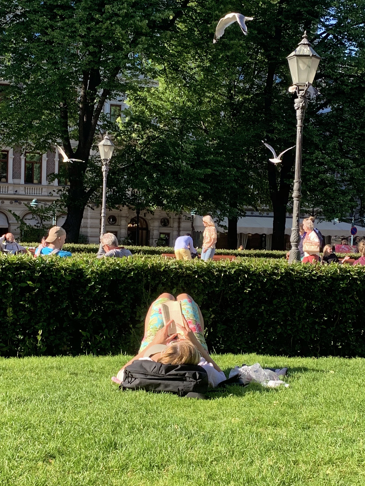 센트럴 마켓을 시작으로 주변 상가들을 전부 기웃기웃 거리다 보니 어느새 또 에스플란디 광장이었다. 이날 에스플란디 광장에서는 피크닉을 즐기는 사람들이 많길래, 오늘은 갈매기들이 음식을 안채가나? 하는 생각과, 내가 앉아서 햇빛 바라기를 하던 자리 바로 앞에 있는 친구들끼리 온 무리가 도시락을 꺼내 먹는걸 보고 용기가 생겼다.