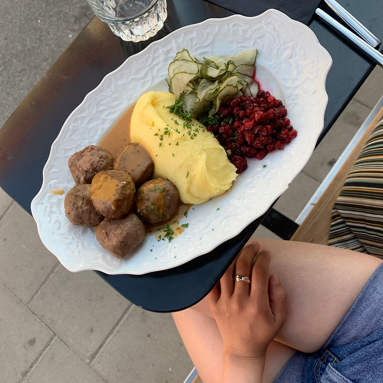 스웨덴식 미트볼의 정석 (?) 은 다음과 같더라. 라즈베리 퓨레와 으깬 감자가 기본이고, 그 옆에 곁들이는 채소가 있는게 정통인것 같았다. 그리고 이 조합은 이케아 미트볼에도 동일하게 적용 되고 있었다.
