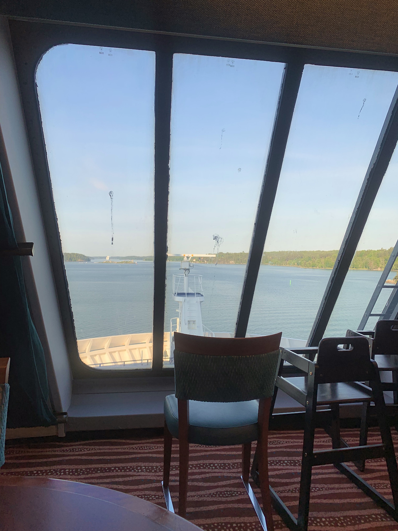 창문이 근처에 있는 테이블도 보이길래 그쪽 테이블에 자리를 잡고 마음껏 음식을 가져다 먹었다. 매일 아침 과일만 조금 먹다가 이렇게 밥을 많이 먹고, 앉아서 섬이 지나가는것도 보고. 이번여행에서 겪은것 중 가장 호화스러운 아침이 아닌가 싶더라.