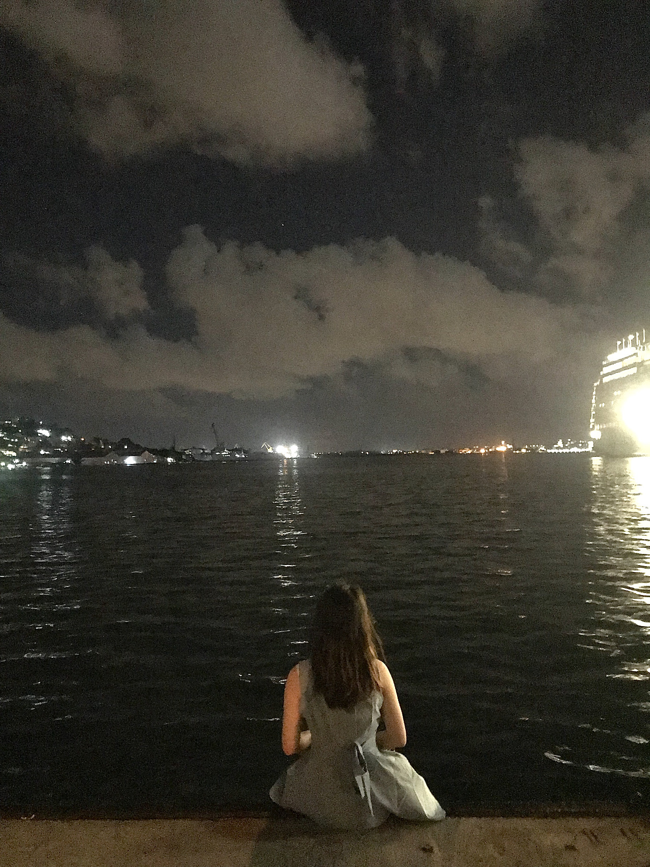 그렇게 조용한 오비스포를 걷다보니 골목골목에 노래를 틀어놓고 춤 추는 사람들이 심심찮게 들려왔다. 다들 일행인가? 싶은 생각이 들 만큼 노래를 틀어놓고 듣다 갑자기 일어나서 춤을 추고, 서로에게 춤을 권하는 사람들. 그게 쿠바 사람들이었다. 끼고 싶은 마음이 조금씩은 있었으나, 저들이 추는 살사는 전혀 알 리가 없기에 멀찍이서 구경만 하고 지나보니 어느새 오비스포 거리 끝이었다. 근데 그 길거리 끝이 의외로 항구와 맞닿아있길래 아까 말레꼰을 지나가며만 봤던 다른 올드카 일행들이 바로 바다로 달려갔고, 바다 특유의 짠내가 풍겨오지 않는 바다가 신기했다. 왜였을까. 카리브해는 바다 특유의 냄새가 나지 않는 이유는 왜였을까.