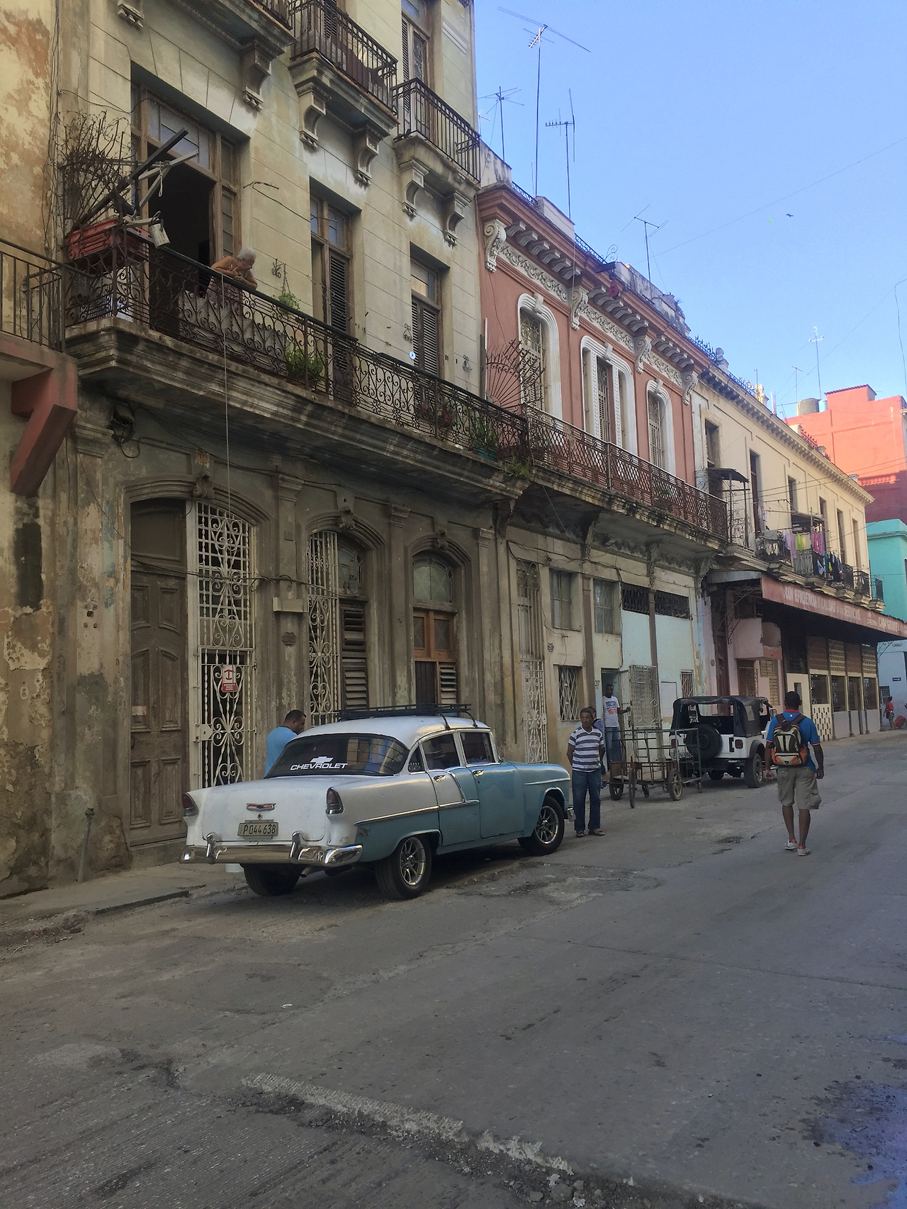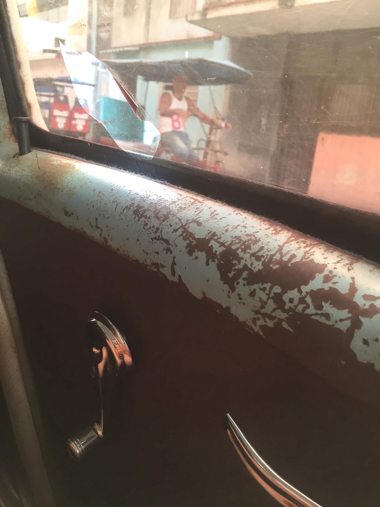 어제 한번 타 봤던 올드카는, 꽤나 차체가 넓은 편이었다. 그리고 충격적인 상태를 자랑하고 있었는데 그도 그럴만 한게, 미국과 수교를 끊기 전, 미국의 부호들이 쿠바까지 자기들이 타고 다니던 차를 끌고 내려왔었다. 그리고 다시 미국으로 돌아갈 때 버리고 간 차들이 있었는데 그 차를 쿠바인들이 고쳐서 아직까지 타고 다니는게 올드카의 시작이었다. 그래서 계기판이 움직이지 않는 차도 많고, 뒷문은 앞에서 열어줘야 하는 경우도 허다했다.