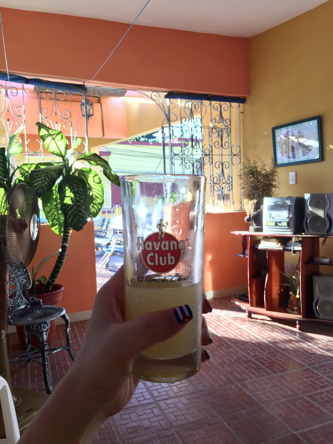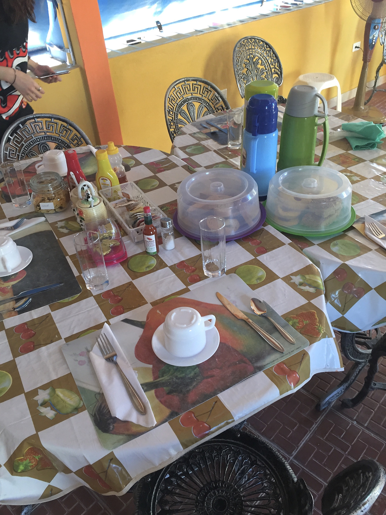 아침으로 주신건 간단한 빵과 과일. 어디서나 나올법한 간단한 아침 조합이었지만, 과일이 싱싱하고 함께 주신 주스가 너무 달아서 놀라웠다는 평이다. 그리고 밖에서 들려오는 쿠바인들의 아침 소리를 들을 수 있다는 점?