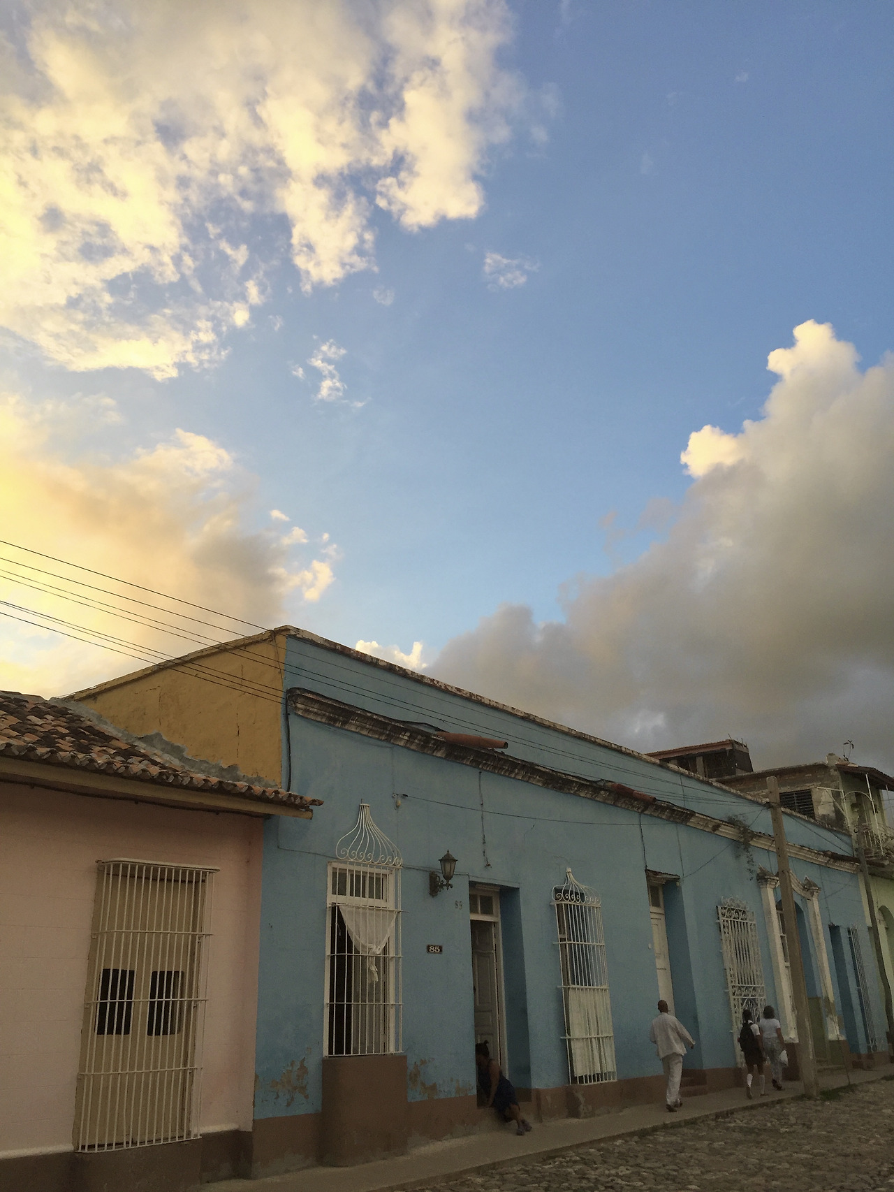 한국처럼 특정 장소에서 와이파이가 가능하게 한다면 어떨까 하는 생각을 하며 공원에 앉아 이들의 삶을 구경하고 인터넷을 하다보니 어느새 해가 더욱 늘어지기 시작했고, 다들 혁명 박물관으로 걸음을 옮겼다. 혁명박물관 쪽으로 걸음을 옮기며 바라본 쿠바노들의 일몰 환경은 더 여유로워보였다. 따스한 크림색 구름이 가득한 하늘, 공터에서 야구하는 아이들, 저녁 노을이 트리니다드 곳곳을 따스로이 어루만지는 노을지는 무렵의 트리니다드.