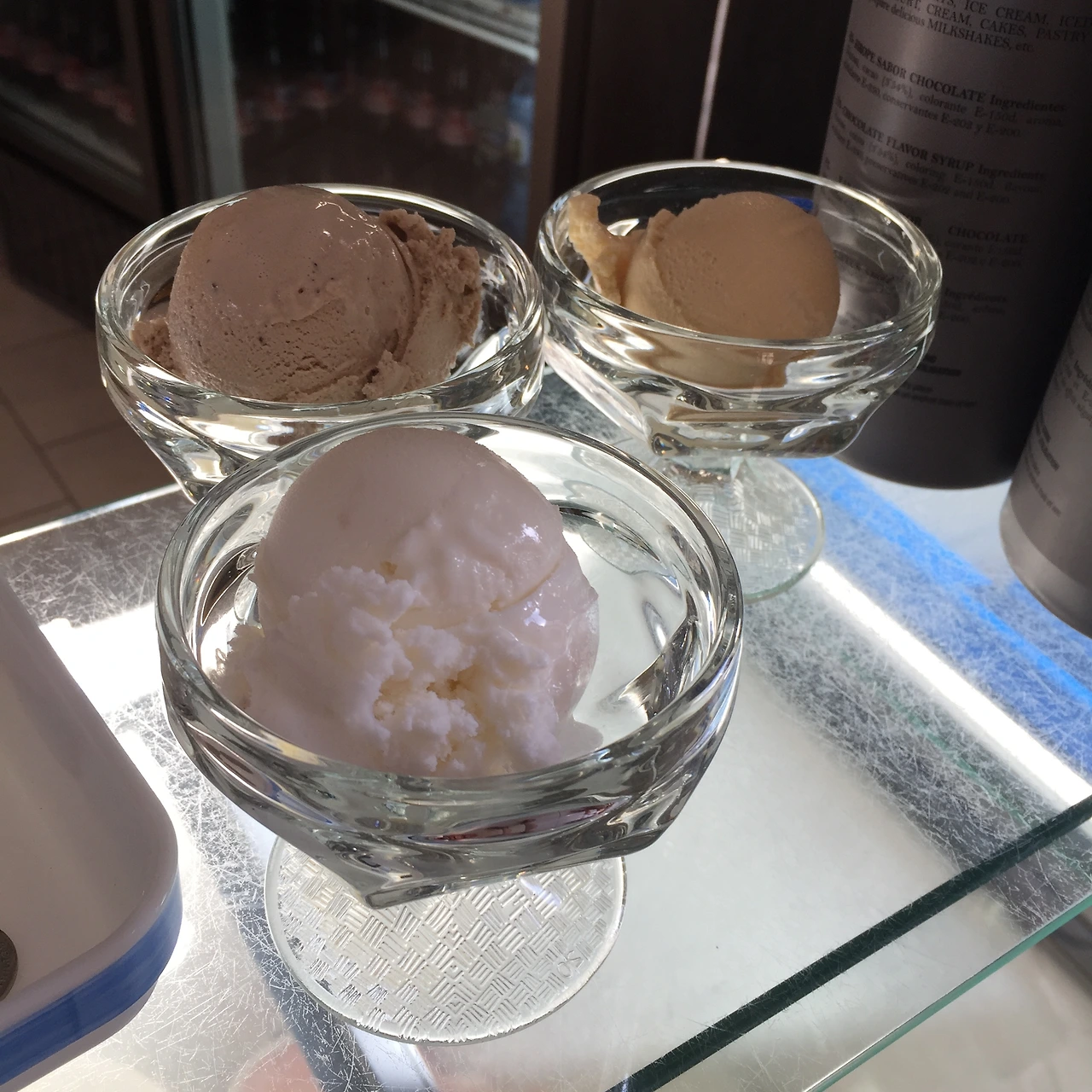 아이스크림 가게임에도 불구하고 에어컨이 없어서 당황스러웠지만, 가게 안쪽에 자그마한 정원 처럼 만들어진 곳이 있는데 그늘인데다가 바람도 잘 불었다. 그 공간에 둘러 앉아 자리를 잡은 우리는 아이스크림을 급하게 먹었다. 날이 너무 더워 아이스크림이 금새 녹기 시작했기 때문.