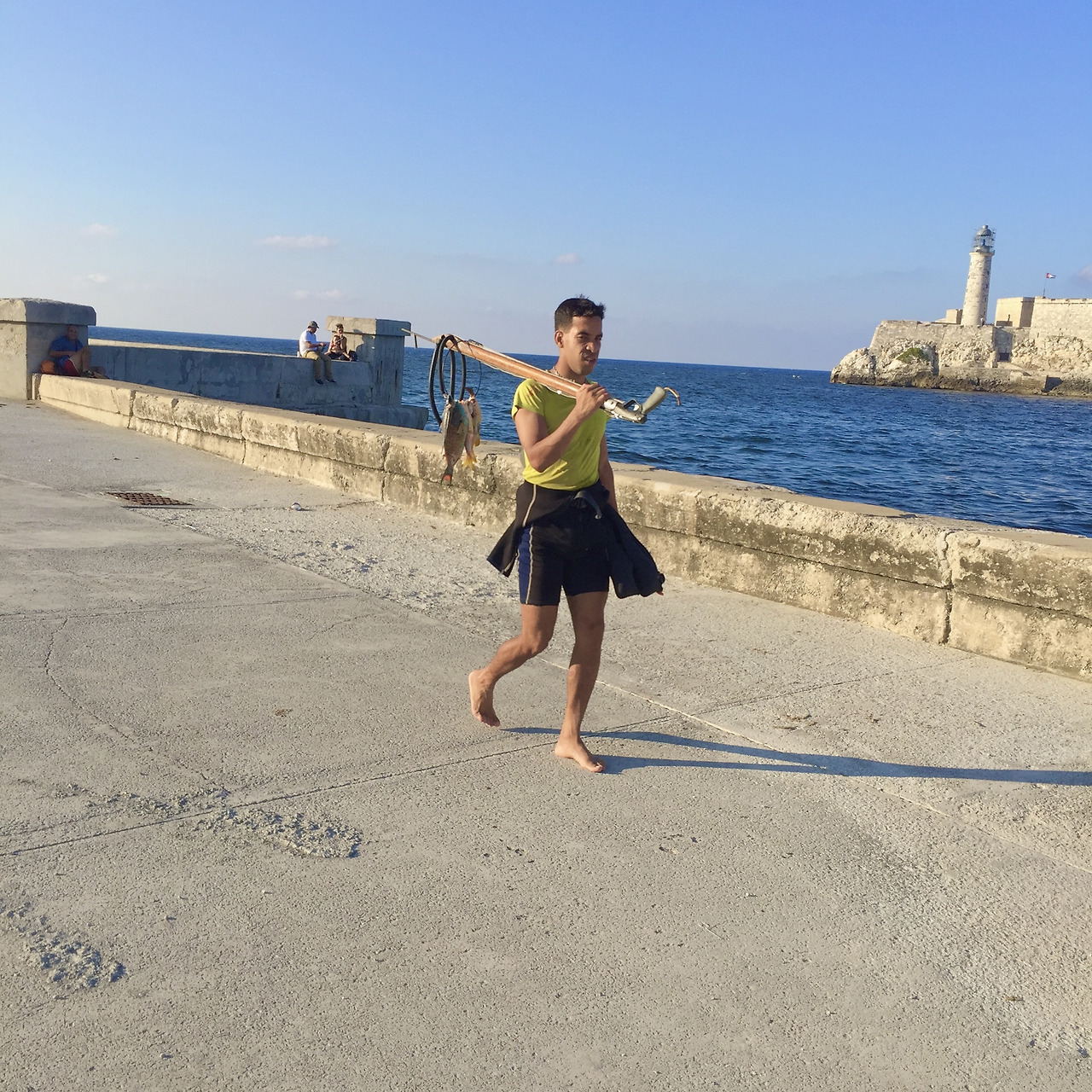 다이빙 하는 사람, 데이트하는 사람, 산책하는 사람, 낚시를 하는 사람, 말레꼰에 앉아 음악을 듣는 사람, 내가 쿠바에 온 첫날 택시투어를 하다 들렀던 말레꼰에서는 온통 관광객 밖에 보이지 않았는데 이렇게 약간 변두리쪽에 오니 그네들이 말레꼰과 함께 살아가는 것을 볼 수 있으니 이 역시 소득 아니겠는가. 처음에 말레꼰에 대한 내 인상은 분노의 질주 오프닝으로 유명한, 쿠바에서 꼭 봐야할 드라이브 코스. 엄청 예쁜 강. 정도였다. 그래서 관광명소가 된 강. 하지만 관광객이 북적거리는 쪽을 조금만 벗어나면 쿠바인들이, 아바나 시민들이 말레꼰과 더불어 살아가는 모습을 얼마든지 볼 수 있었다. 한강, 한강에 비유할 수 있을 것 같았다. 관광명소이지만 동시에 그네들이 여유를 즐기고 삶을 찾는 공간, 말레꼰.