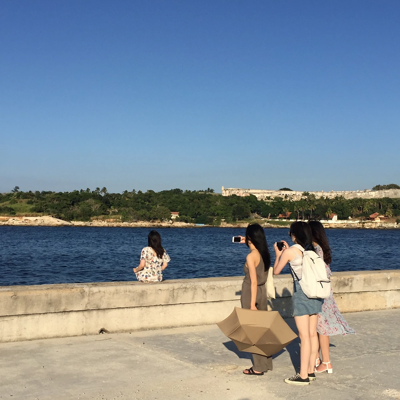 내가 올드카투어를 하며 내렸었던 곳은 프라도 광장과 맞닿아있어 유동인구도 많고, 사람들이 가장 많이 고이는 (?) 곳이었어서 그런지 쿠바 거리의 악사들이 다가와 무작정 돈을 뜯어냈다. 거리의 악사라고 하니 집시가 생각나지만, 정말 거리의 악사였다. 갑자기 경치를 구경하는 관광객을 에워싸고 음악을 연주하며 노래를 불러준다. 이 노래를 생각없이 듣다보면 금전을 요구했고, 이들을 피하는 방법은 에워쌓이기 전, No!를 단호히 외치고는 자리를 옮기는 것이었으나, 자리를 옮겨도 그들은 따라오는데 어떻게 하겠는가. 하지만 우리가 발견한 이 스팟은 아무도 우리에게 관심을 주지 않아 최적이었다.