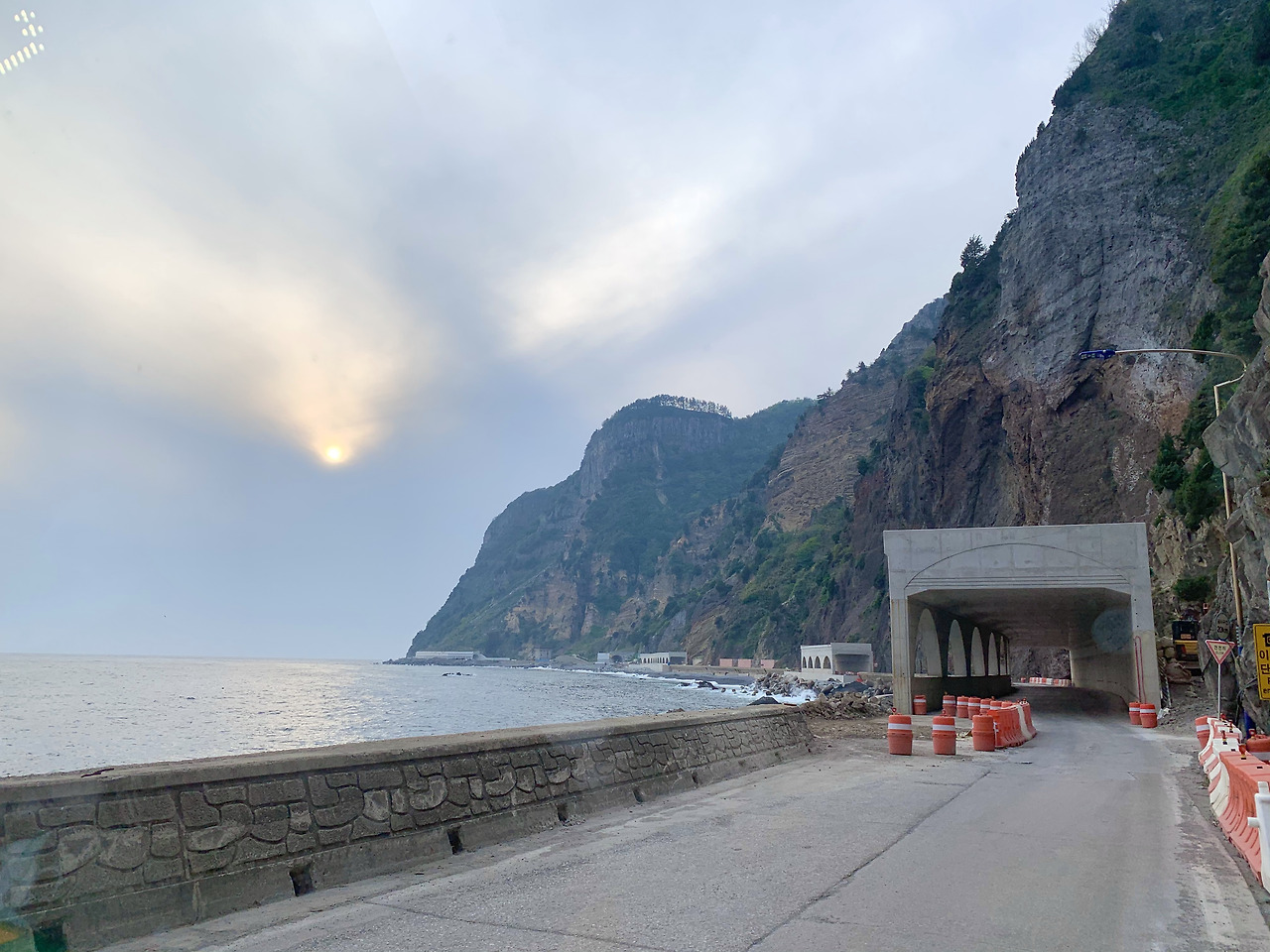 퀵보드를 타고 지나갔던 길을 버스를 타고 편하게 앉아서 올라가고 있자, 내가 했던 짓이 얼마나 무모한 짓이었는지를 매우 마음 깊이 깨달았다. 울릉도에 일주도로가 뚫린 것은 얼마 되지 않는다. 그렇지만 울릉도의 험준한 지형 때문에 길이 고르게 뚫려있지 않고 섬의 동쪽, 그러니까 저동항~도동항~내수전 쪽은 상당히 길이 잘 뚫려 있으나 공항이 건설중인 사동항부터 숙소까지의 북면인 섬의 서쪽~북쪽은 아직도 도로 공사중인 곳이 많았으며 차 두대가 간신히 스쳐지나갈 정도의 넓이의 길이 이어지다 심심치 않게 1차선 터널이 나타났다.