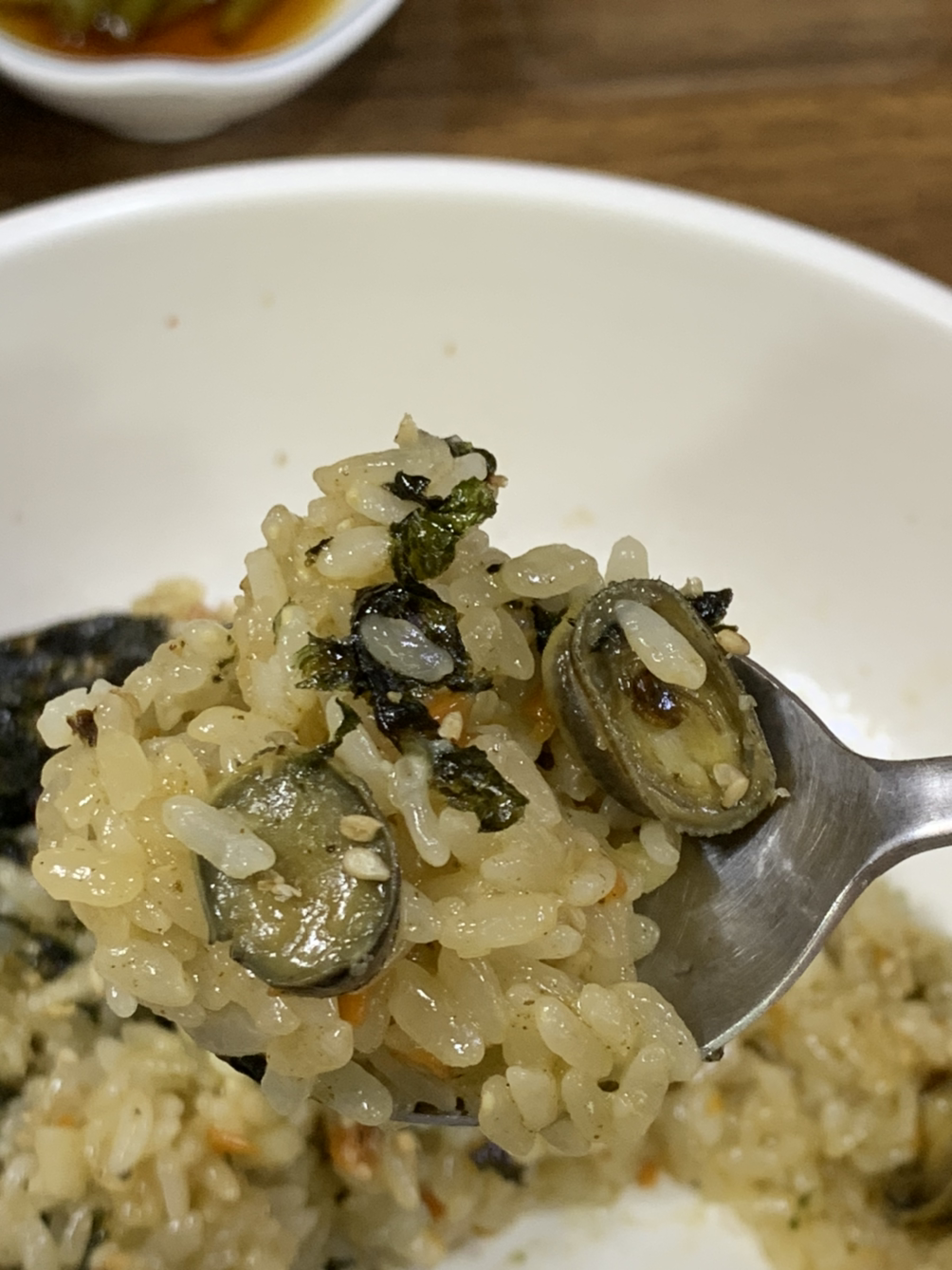 해산물을 그닥 즐겨 먹는 편이 아니어서 따개비를 처음 먹어보는데 따개비가 이렇게 쫄깃한 식감을 가진 생물이라는 것도 처음 알았고, 명이나물 무침의 새콤달콤함과 쫄깃한 식감, 그리고 따개비밥 양념까지 곁들여지니 왜 1인분을 시켰을까 혼자서도 2인분 클리어 가능인데 라는 생각을 하며 말그대로 “퍼먹었다”