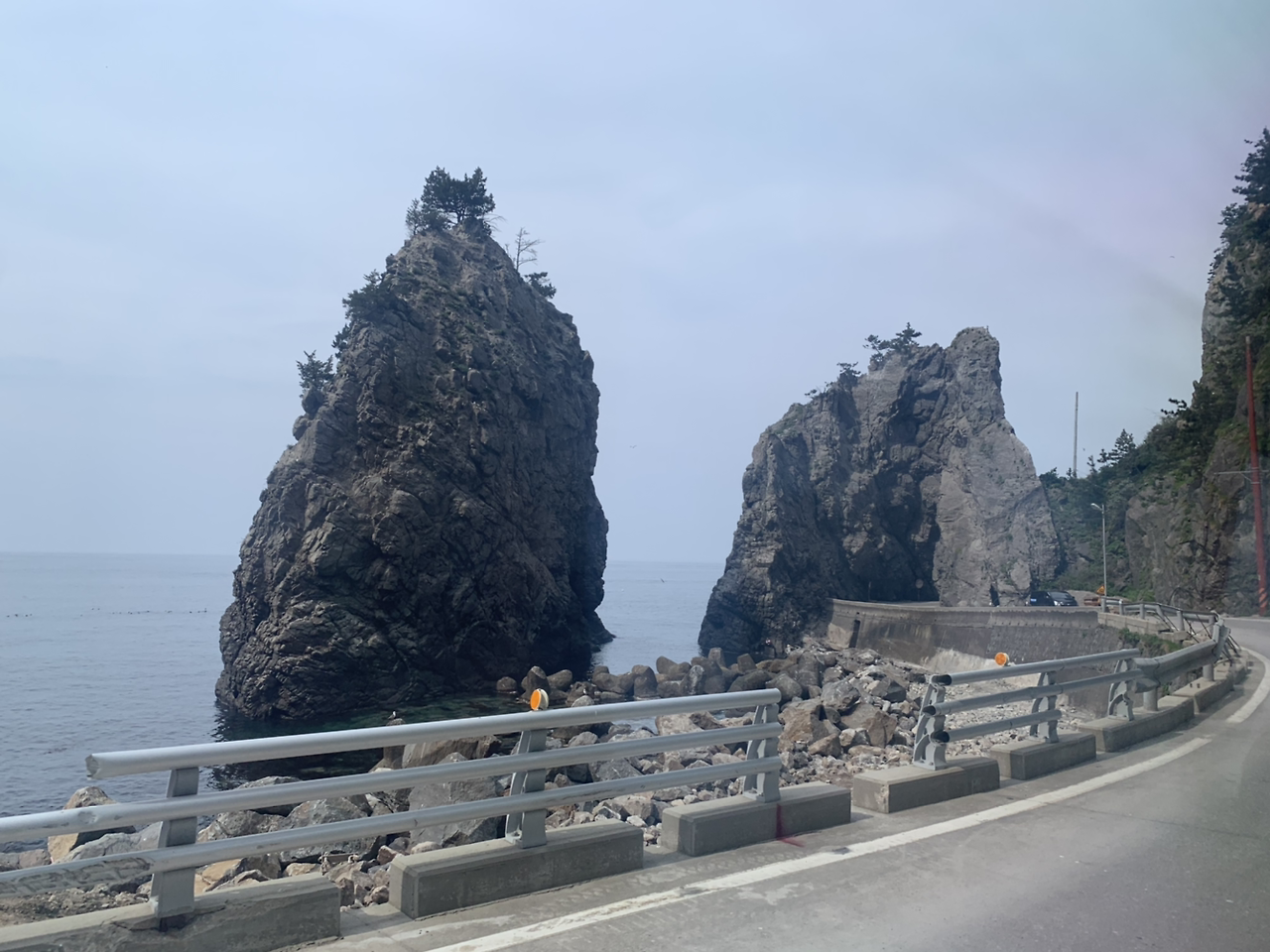 그리고 버스가 출발한지 얼마 지나지 않아 기사님이 창 밖에 비치는 풍경을 하나하나 설명해 주시기 시작했다. 내가 패키지 관광객들용 버스를 잘못탔나 싶을 정도로 상당히 자세하게. 옆에 지나가는 세개의 바위는 선녀암인데 막내가 가장 늑장을 부리는 바람에 옥황상제가 화가 나 막내 바위에만 풀이 자라지 않는다거나, 저 바위는 코끼리 바위다 등등.