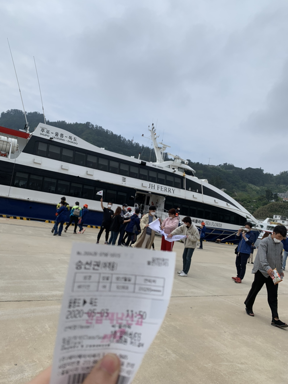 그들의 실패담 (?)을 마음 깊이 새기고 카페에서 기다리며 멀미약을 원샷하고는 입선 시간이 되자 배에 올랐다. 과연, 날씨요정이라 자타가 공인하는 나를 독도는 허락 해줄것인가.