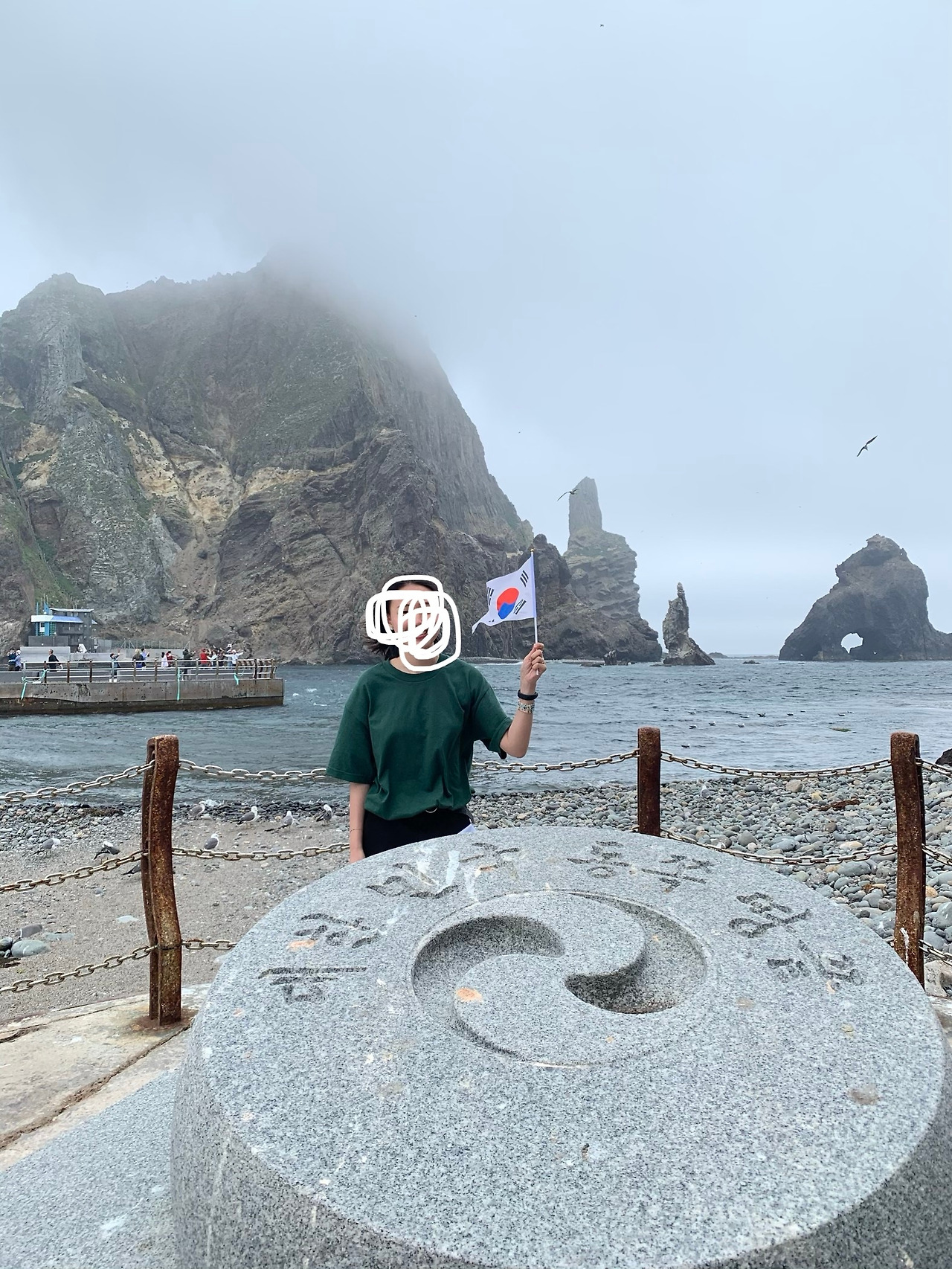 대한민국 동쪽 땅끝 표지석을 찍고 나니 주변을 둘러볼 여유가 생겼다. 날씨가 좋지않아서인지 안개가 슬금슬금 독도를 향해 다가오는게 보였다. 하지만 안개낀 독도는 또 그 나름대로의 신비함으로 가득찼다. 쉽게 출입을 허락하지 않는 도도함을 가지고 2020년 들어 처음으로 출입을 허락하고는 흥! 하니 안개를 이불삼아 뒤돌아 눕는 모양새 같아보였다. 내가 정말 살면서 이렇게 들어오기 힘든곳은 또 처음이다.