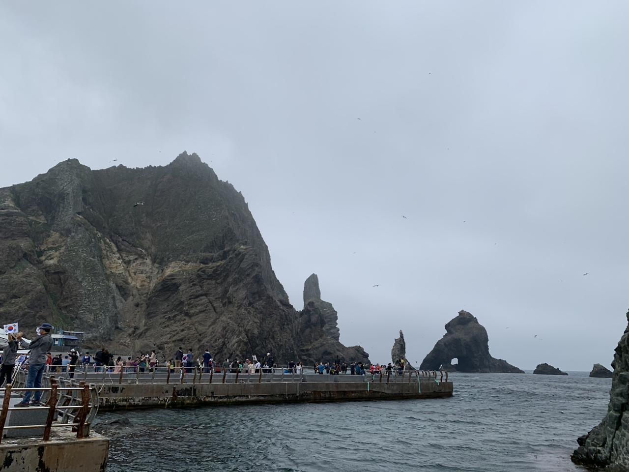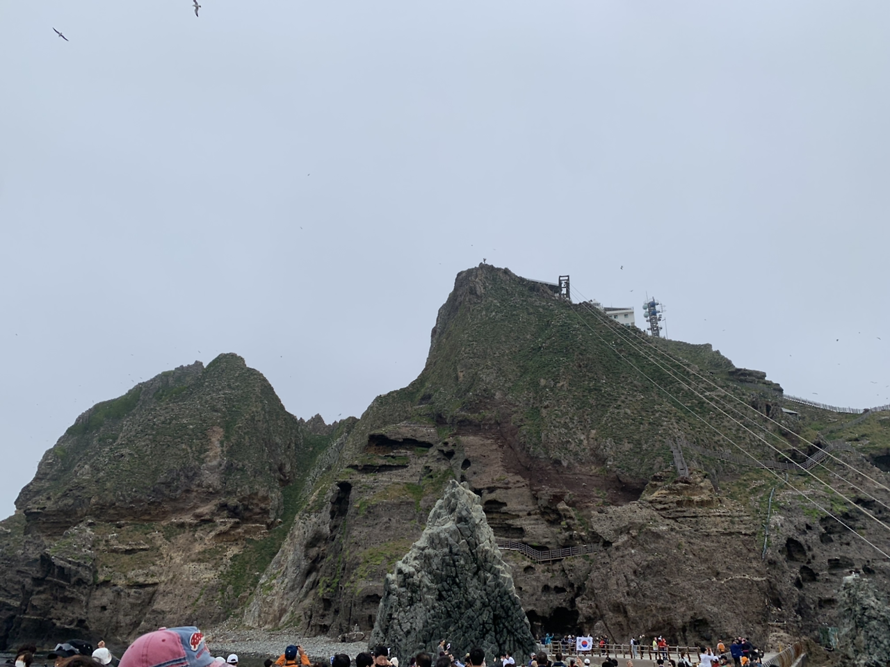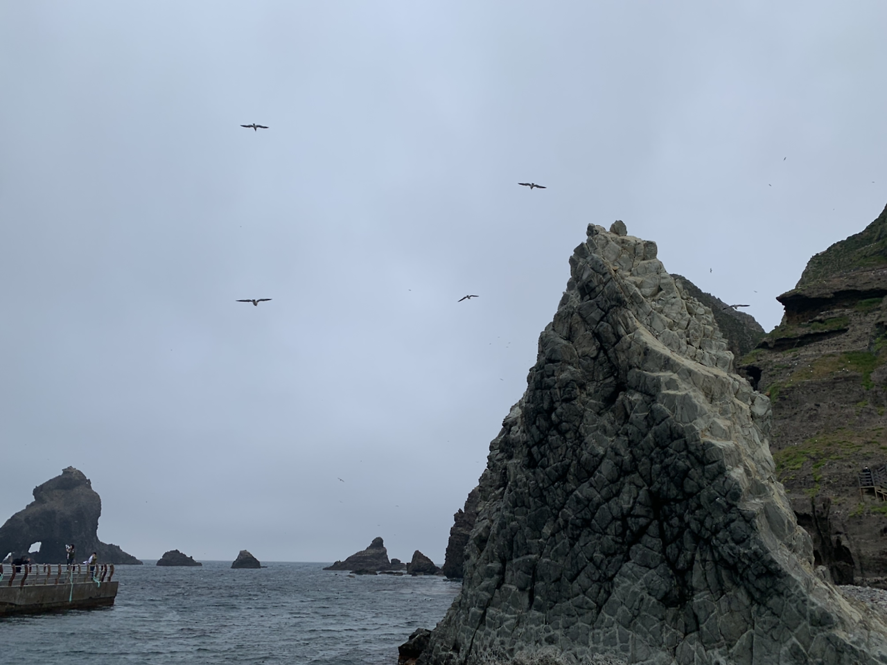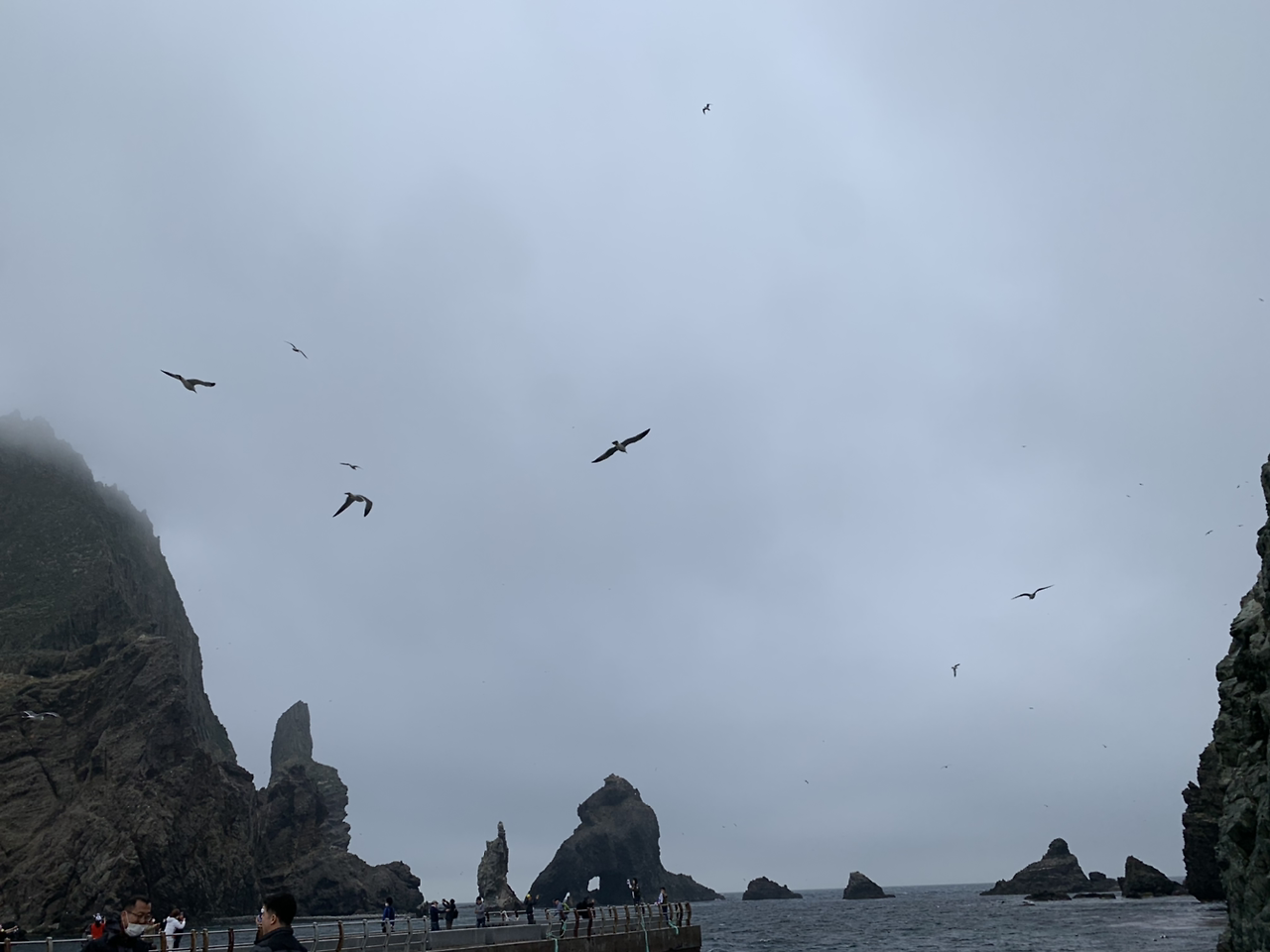그리고 전날 독도 선회관광을 할 때도 느꼈지만 독도에는 새가 정말 많았다. 울릉도도 만만치 않았지만 독도는 연신 새들이 날아다녔다. “독도는 우리땅” 노래는 정말 엄청난 고증을 거친 노래였다 라는게 가슴 진하게 느껴졌다. 안개가 끼고 있는 와중에도 새들이 계속 사람들의 머리위를 날아다녔다. 울릉도에서 동남쪽으로 뱃길따라 이백리. 외로운 섬하나, 새들의 고향. 그래 정말 새들의 고향다운 모습이었다.