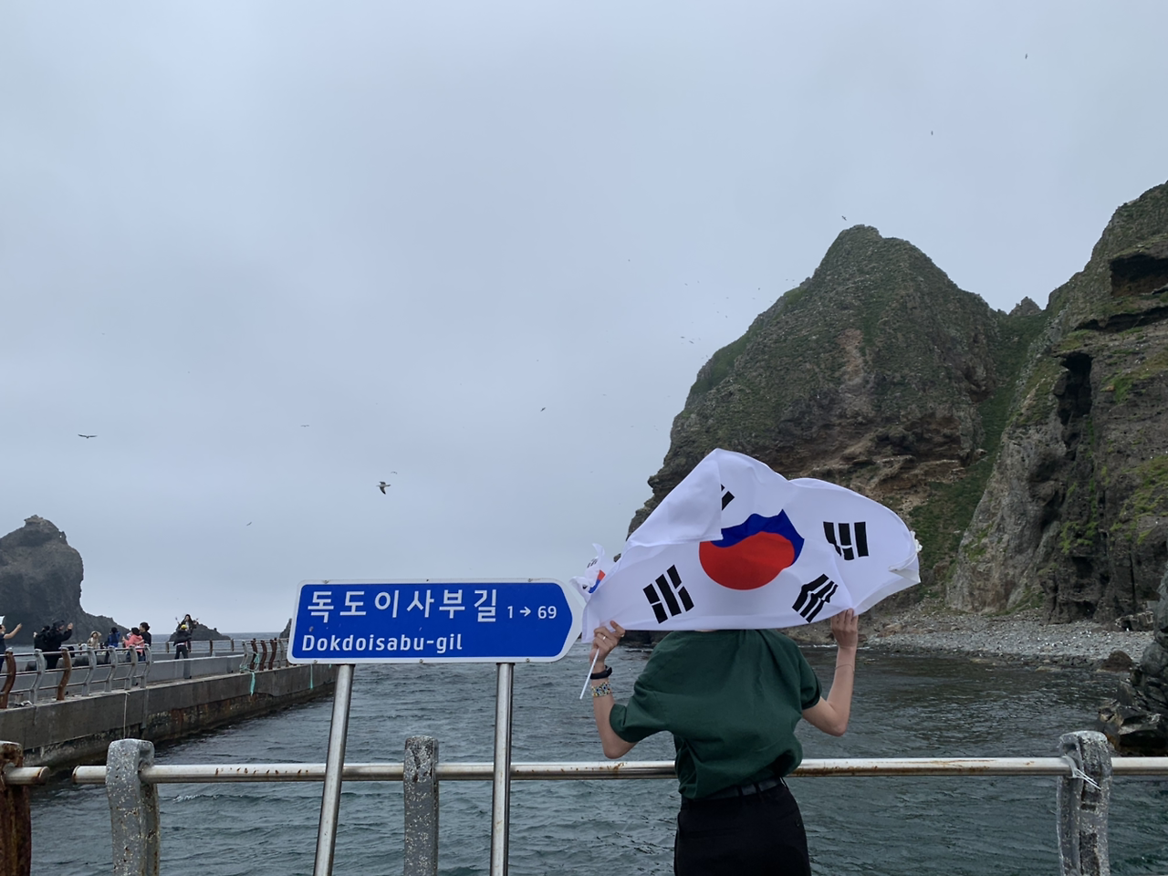내가 울릉도, 독도 여행을 계획했을 때 부터 내 머릿속엔 이 장면만 생각했다. 바로 독도에 들어와서 대형 태극기를 머리위로 휘날리는 장면, 펄럭이는 태극기를 들고 찍은 사진. 이 사진을 위해 집에서부터 대형 태극기를 구입해서 들고왔다면, 나의 관종력이 느껴질까.