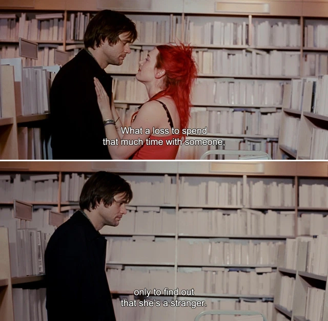 이터널 선샤인은 지인에게 영화 추천을 부탁할 때면 늘 언급되는 영화 중 하나였다. 누가 봐도 감성이 가득한 친구부터 분위기라고는 거의 없을 것 같았던 근육질의 군대 선임까지, 이터널 선샤인은 늘 꼭 봐야 하는 영화라고 말했다.