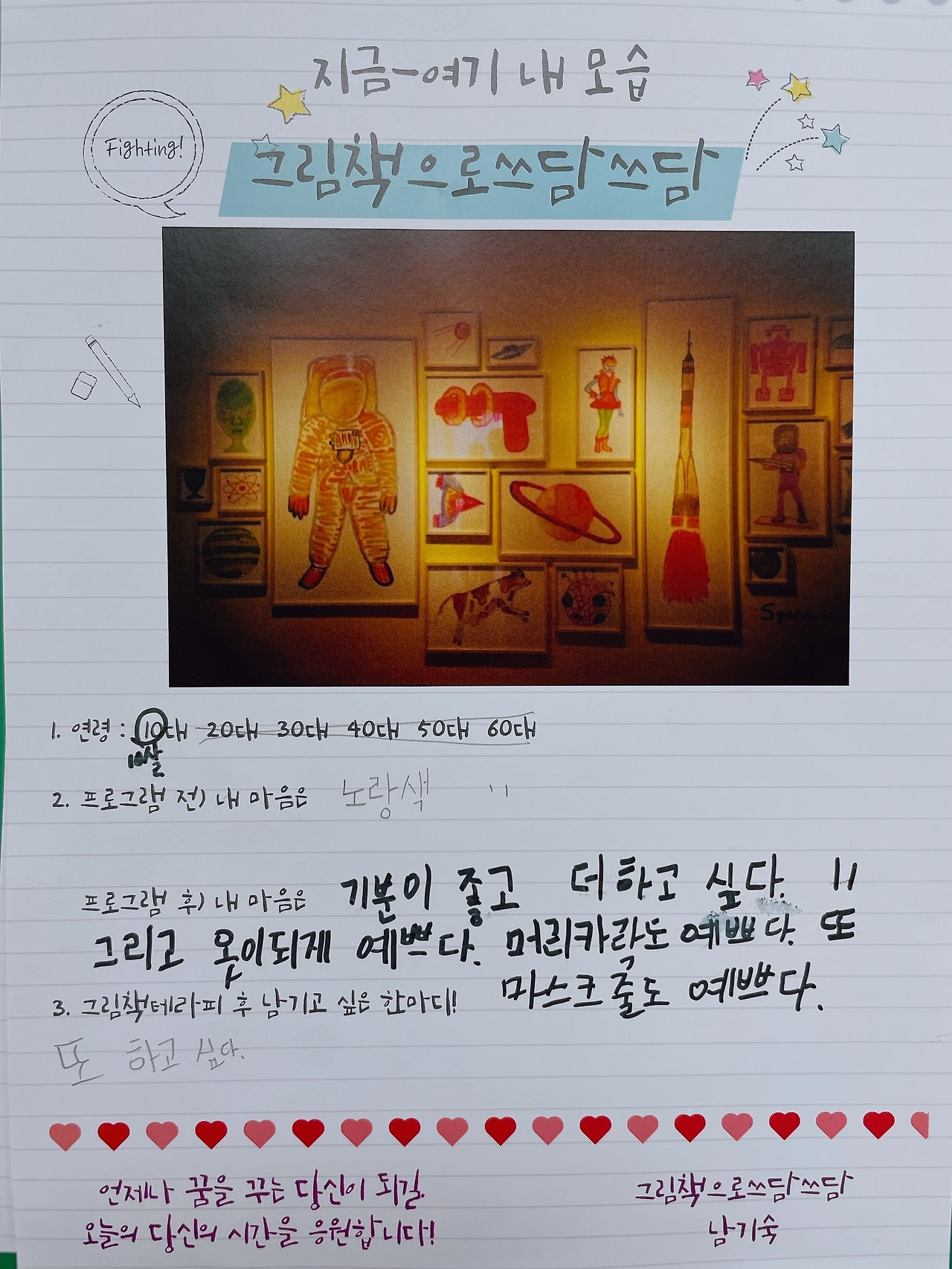 개학을 한지 얼마 안되어 많이 오지 못했지만 ‘체험학습’으로 제출하고 온 친구들이 대부분이었어요. 감사한 마음이 들었어요.