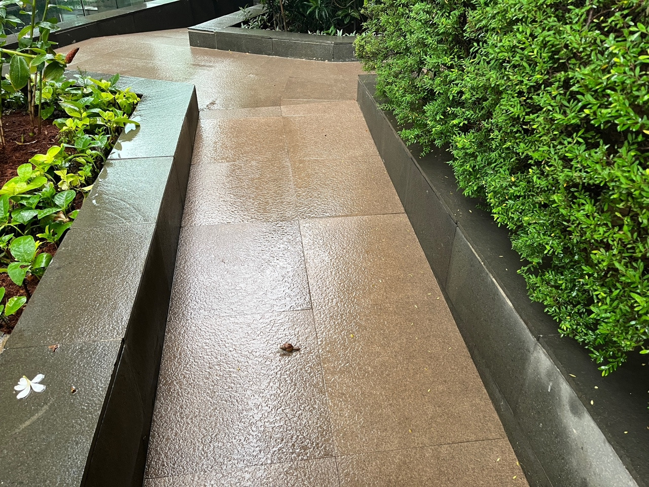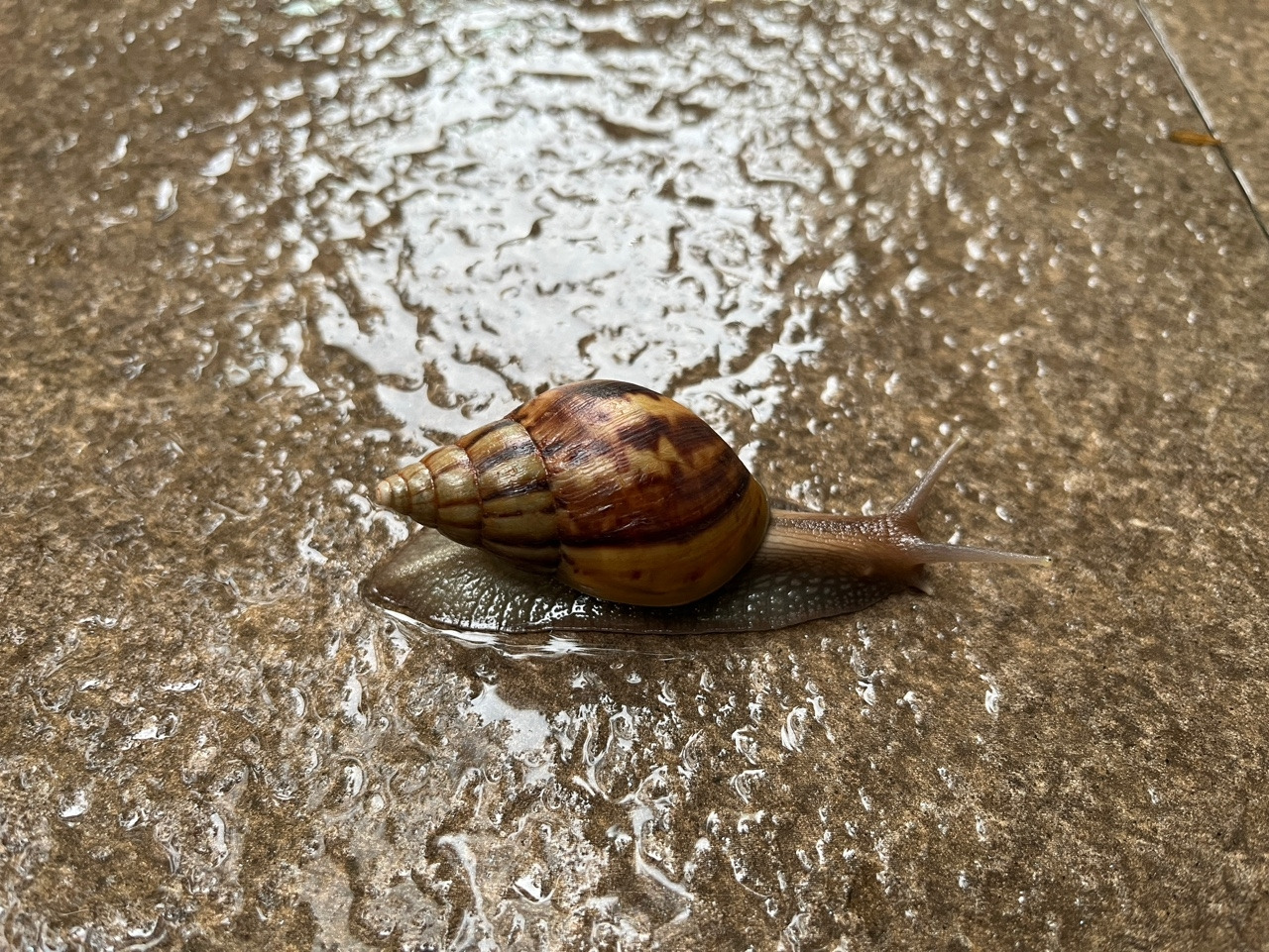 비 맞으며 느릿느릿 이사가는 달팽이.
