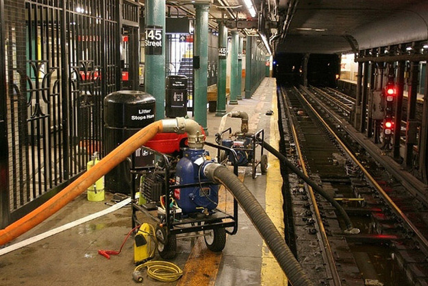 만반의 체비를 갖추긴 했다. 2001년 911 테러 이후에는 아예 동력발전기를 갖춘 펌프 열차를 도입하기 이른다. 최악의 상황을 가정한 것이다. 그리고 실제로 2003년 미국 동부 대규모 정전사태에도 지하철 침수피해는 눈에 띄게 드러나지 않았다. 다만, 2012년 슈퍼 허리케인 샌디는 뉴욕시 교통국의 그토록 상상하기 싫었던 꿈을 기어이 실현해주고 말았다. 지하철 7곳이 정말 꿈에서나 볼 법하게 침수되어 버렸다. 위로라고 한다면 지상이나 지하나 물 많기는 매 한 가지였단 것 정도. 뉴욕시 교통국 사람들은 아마 2012년을 끔찍이도 기억하기 싫은 해로 떠올릴 것이다.