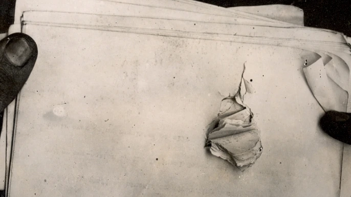 빗발치던 비난전은 한 발의 총소리를 정적에 휩싸였다. 1912년 10월 14일, 루스벨트는 호텔에서 식사를 마치고 연설장으로 향하려던 참이었다. 누군가 그에게 다가왔고 총성이 울렸다. 사람들이 비명을 질렀고, 루스벨트는 가슴팍을 부여잡고 쓰러졌다. 경호원이 달려들어 범인을 붙잡았다. 다른 경호원은 피가 철철 흐르는 루스벨트를 병원으로 옮기려 했다. 루스벨트는 거부했다.