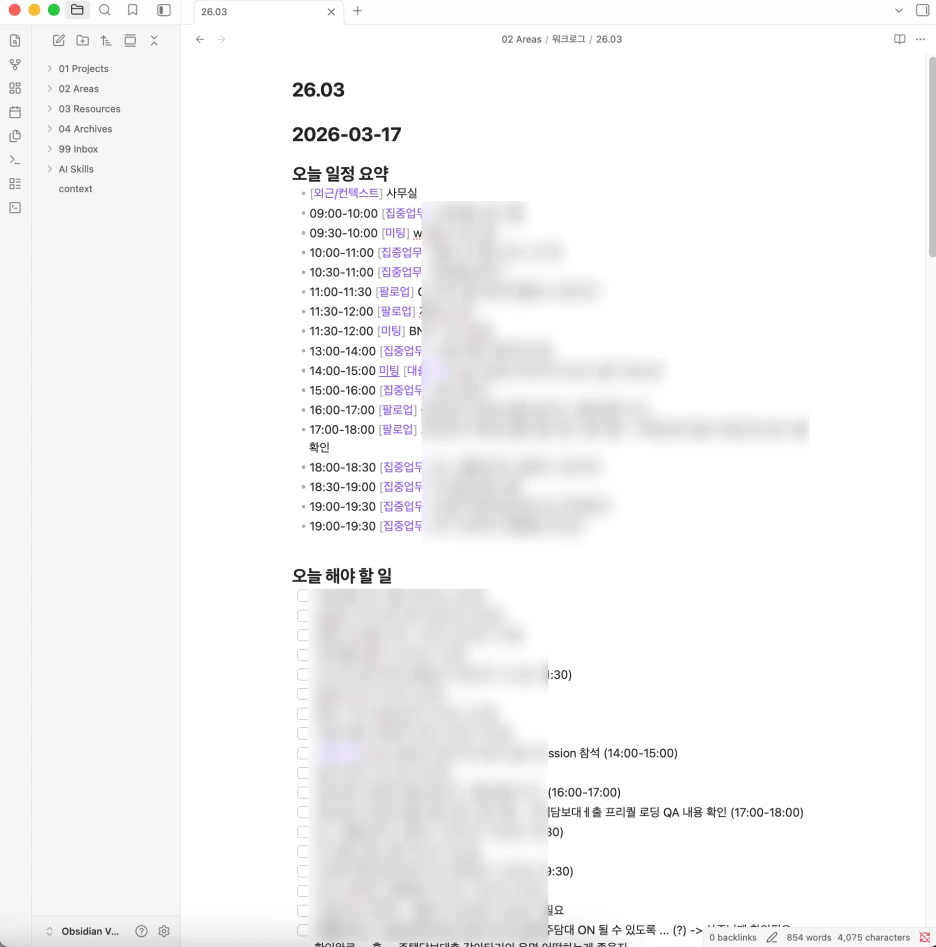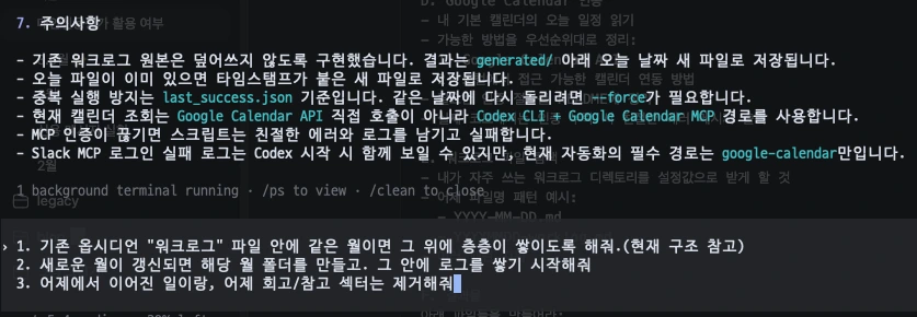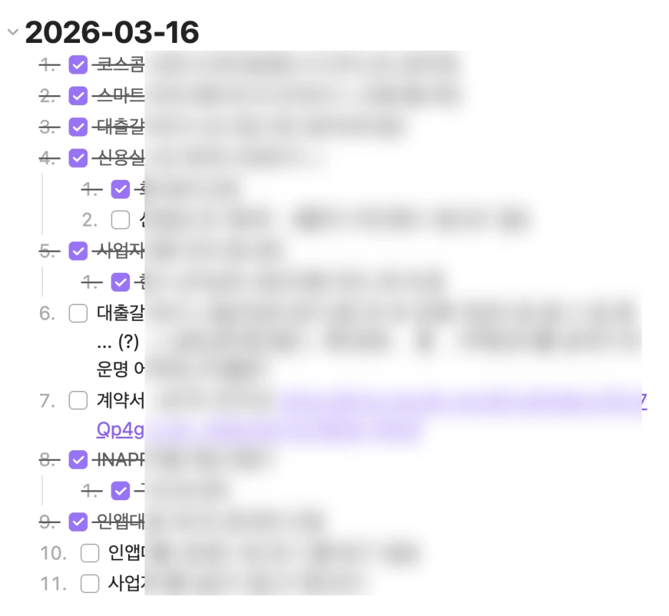 - 오늘 업무일지 = [오늘 구글캘린더] 일정 + [어제 업무일지] 남은 일