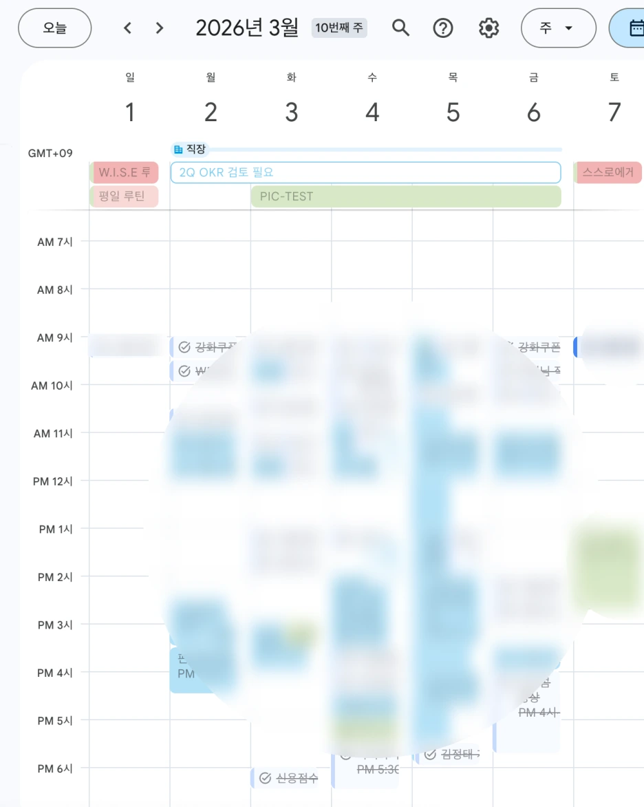 회사 구글캘린더 계정에, 개인 구글캘린더도 동기화를 해두어서