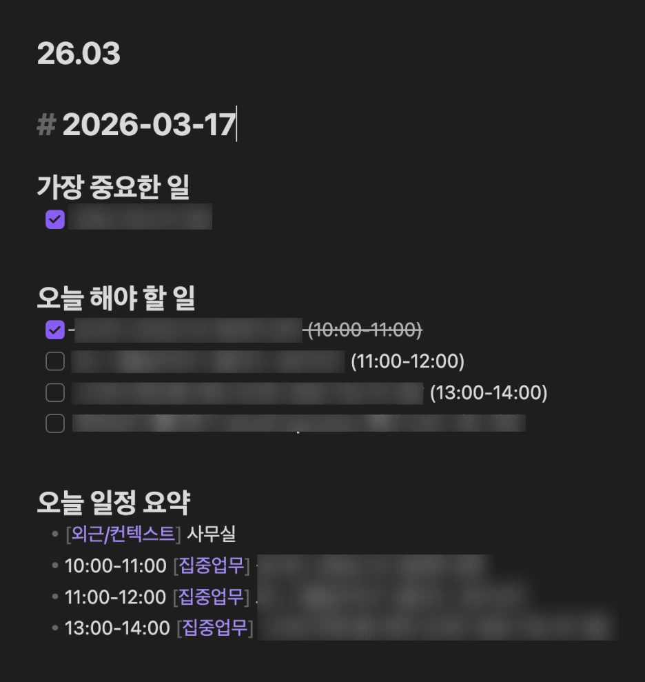 이제부터 옵시디언과 구글캘린더를 쓰는 나의 루틴에 최적화되어